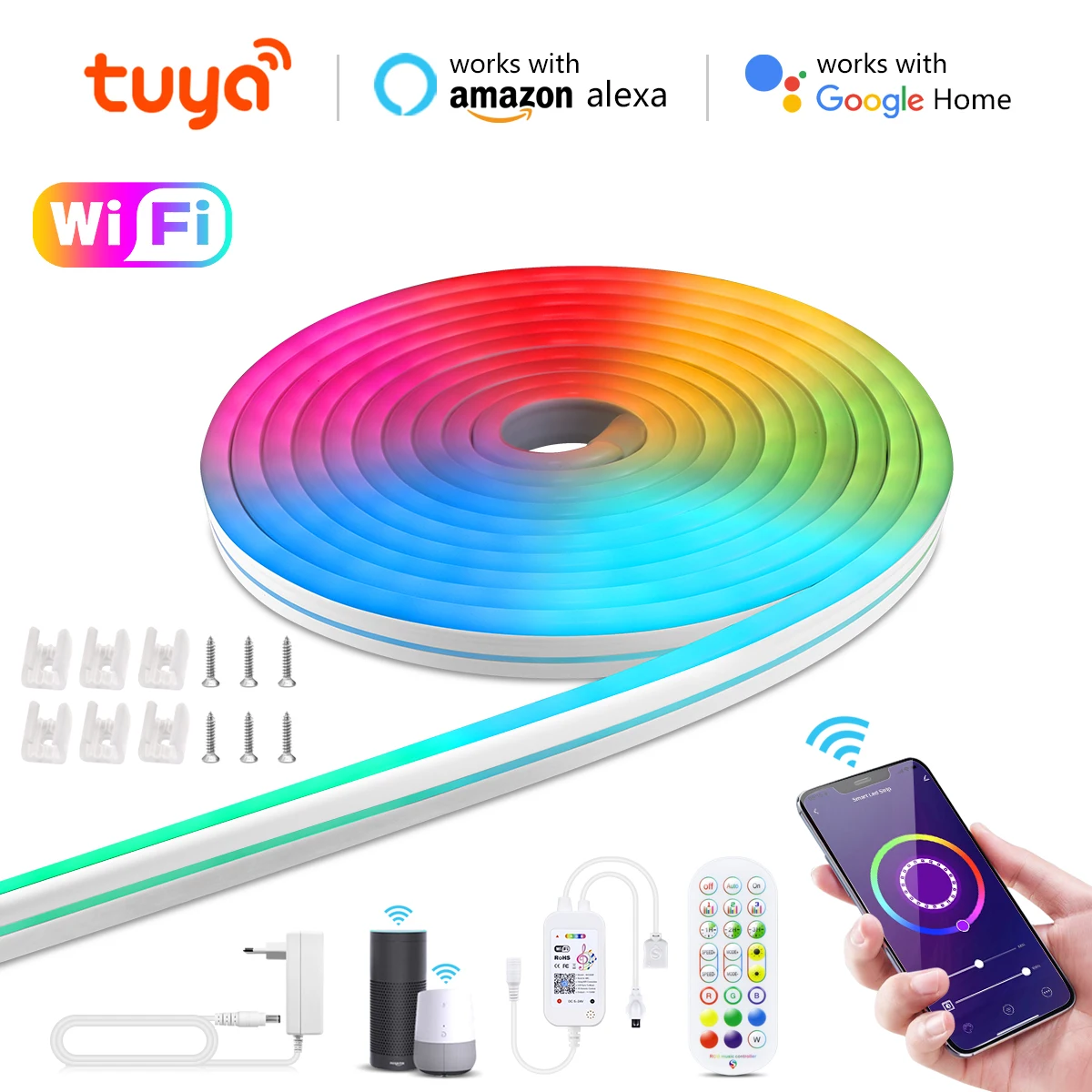 Умная светодиодная RGB лампа Tuya Smart Life светильник оновая полоса с управлением через приложение, работает с Alexa и Google Home, 12 В постоянного тока, Wi-Fi