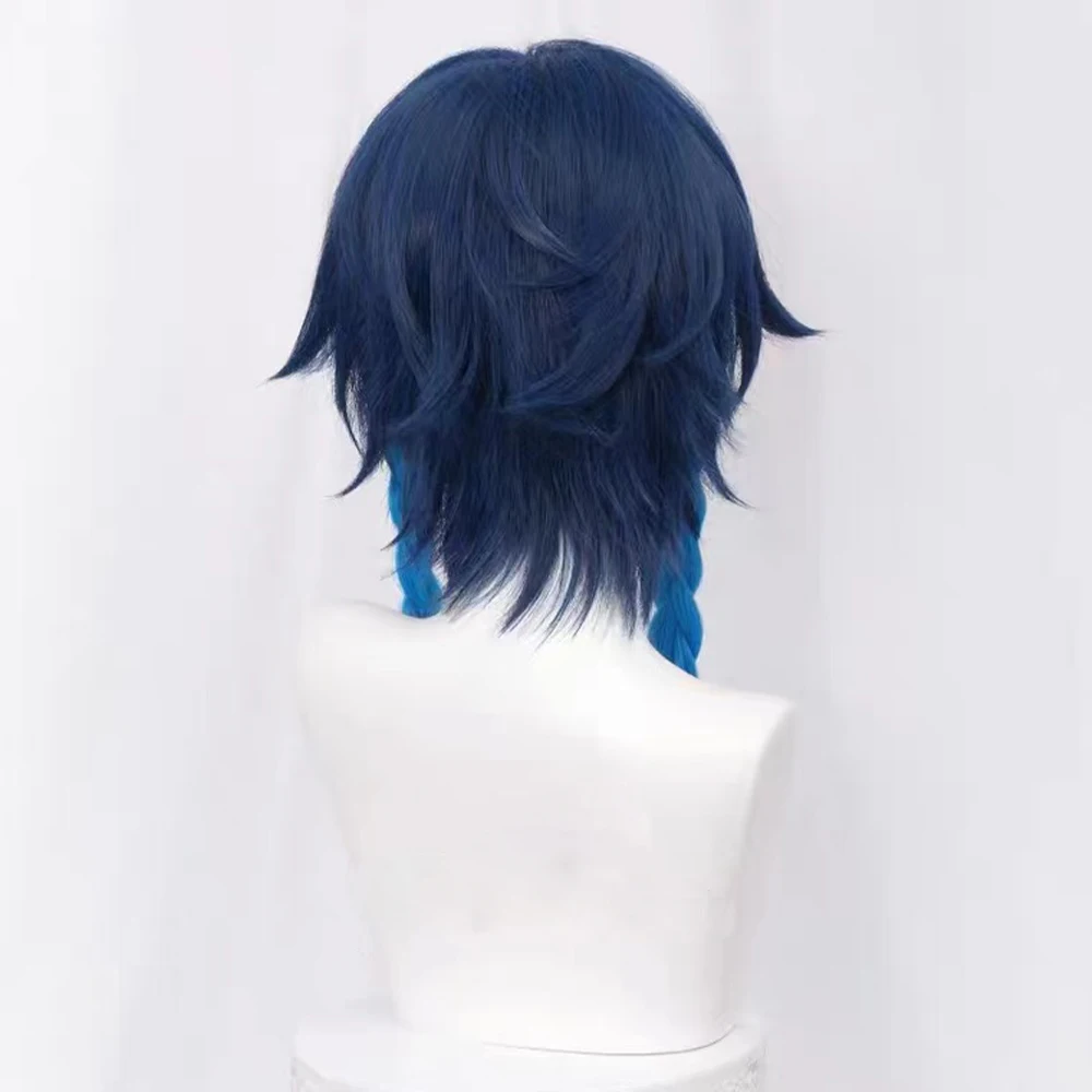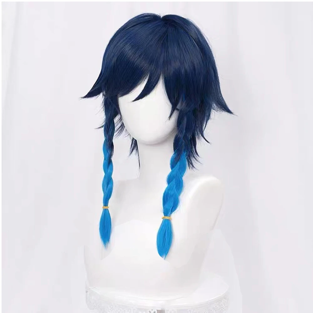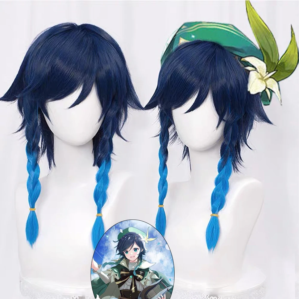 Парики Genshin Impact Venti 50 см, термостойкие синтетические волосы с градиентным синим коротким плетением, для косплея аниме, Хэллоуина, с шапочкой