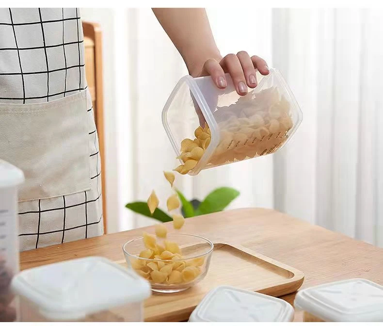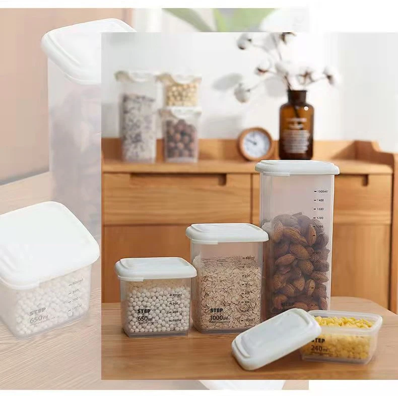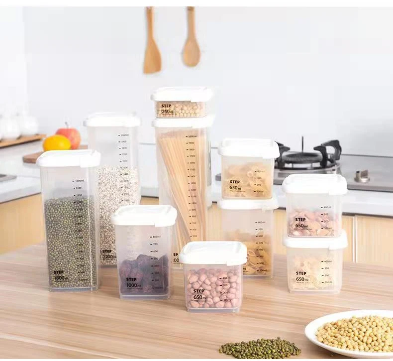 Пластиковый контейнер для хранения пищевых продуктов, органайзер с крышкой со шкалой, герметичные банки, контейнер для еды, контейнер для хлопьев, кухни