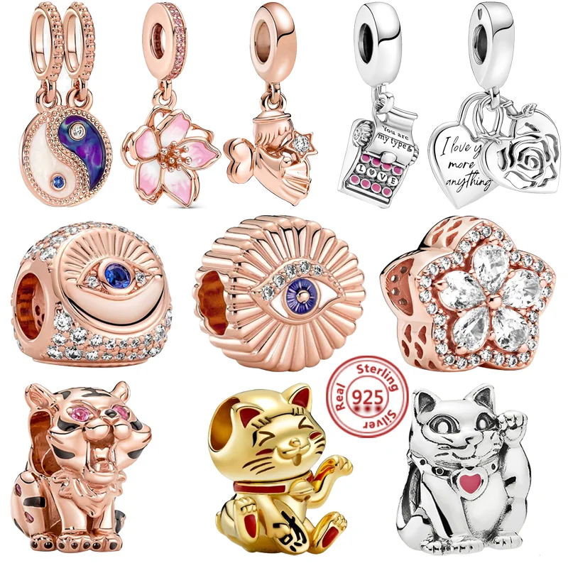 Новый 925 Серебряный кулон с изображением китайского богатства пиксу тигра все глаза бусины пишущая машинка Инь Янь подходят для оригинального браслета-талисмана Pandora