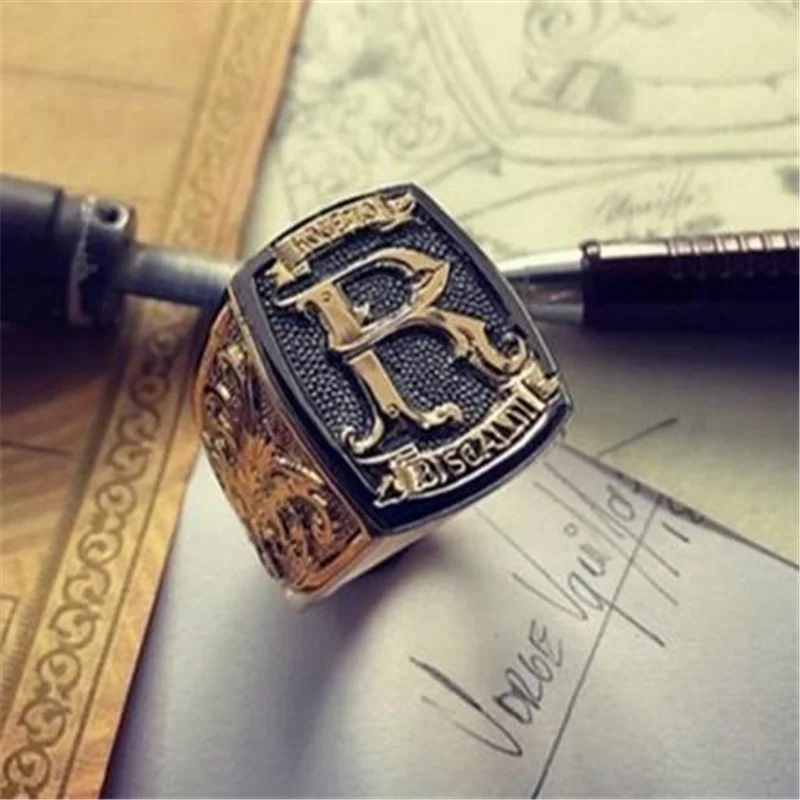 Кольцо мужское круглое металлическое в стиле хип-хоп с буквами