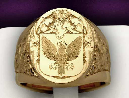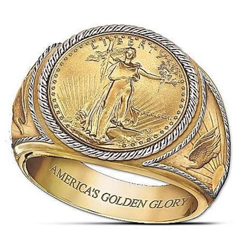 Мужская печатка с двойным кольца с изображением орла, золотистое ко...
