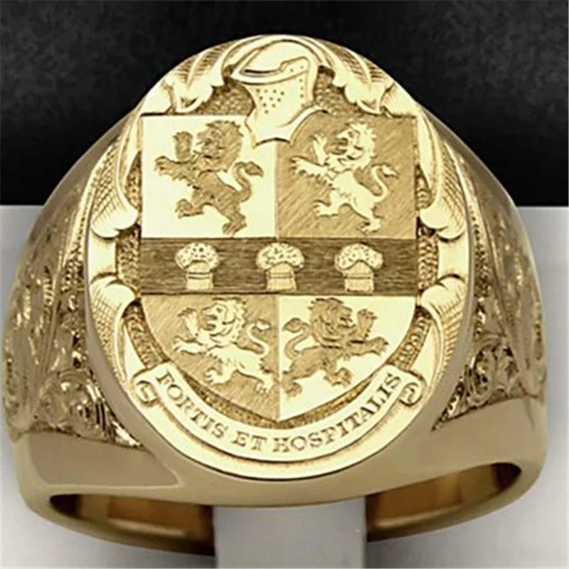 Мужское кольцо с короной и фианитом, золотистое кольцо для вечеринк...