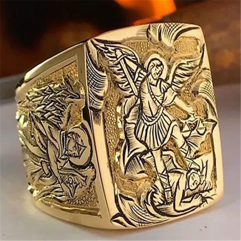 Кольцо в стиле панк Collection! Мужское кольцо золотистого цвета, в готическом стиле