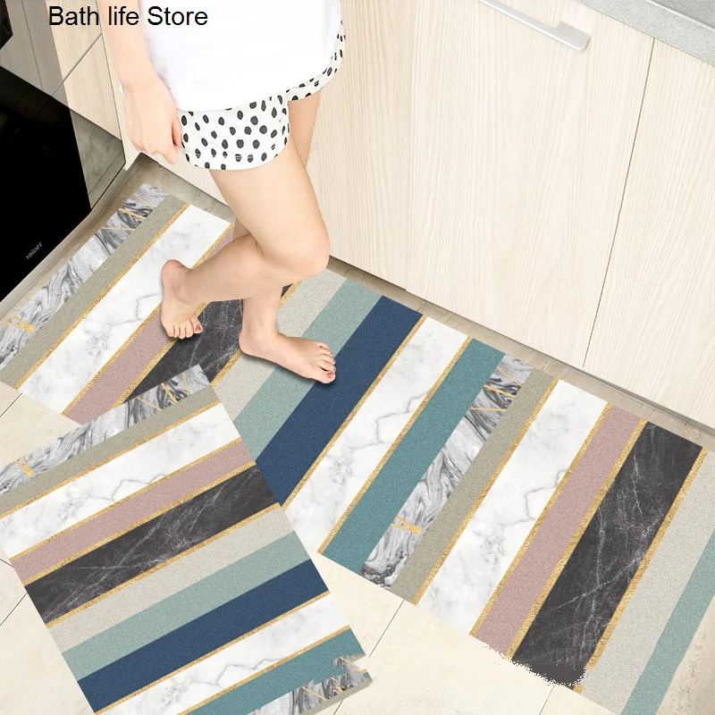 Зеленый Мраморный геометрический кухонный напольный коврик Deocr, домашний ковер, длинный дверной коврик в полоску, Современный домашний декор