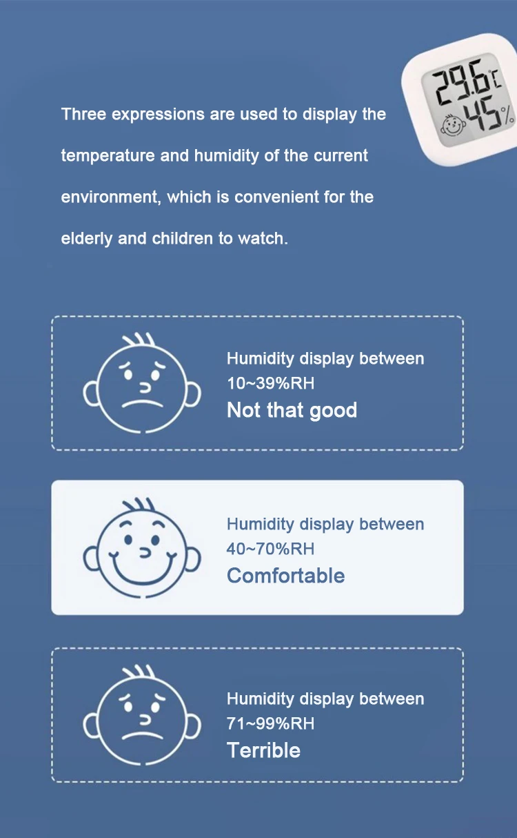 В основном используется для определения текущей температуры в помещении и влажности, чтобы понять значение температуры и влажности в окружающей среде в реальном времени, чтобы сделать соответствующие улучшения, чтобы вы и ваша семья могли иметь здоровую и комфортную среду для жизни