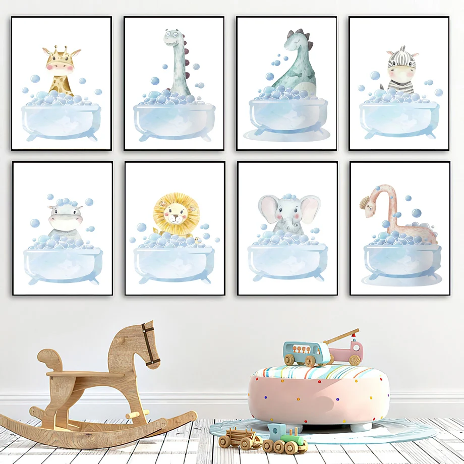 Настенная картина радужный кролик, Зебра, жираф, бегемот, животное,...
