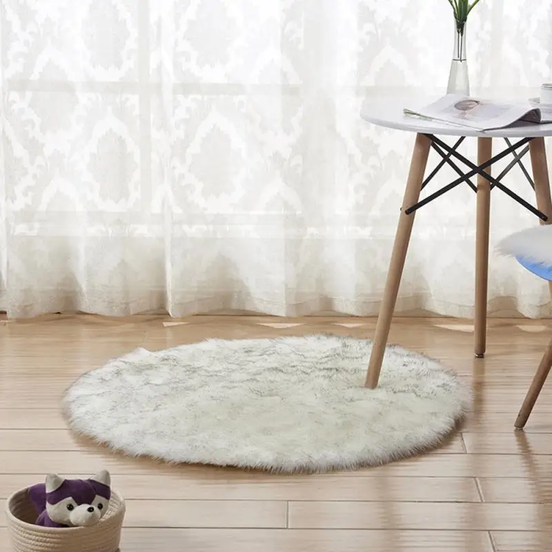 Круглые пушистые меховые коврики из искусственной овчины для спальни, гостиной, украшение, белый плюшевый коврик, коврик, прикроватный коврик, домашний декор