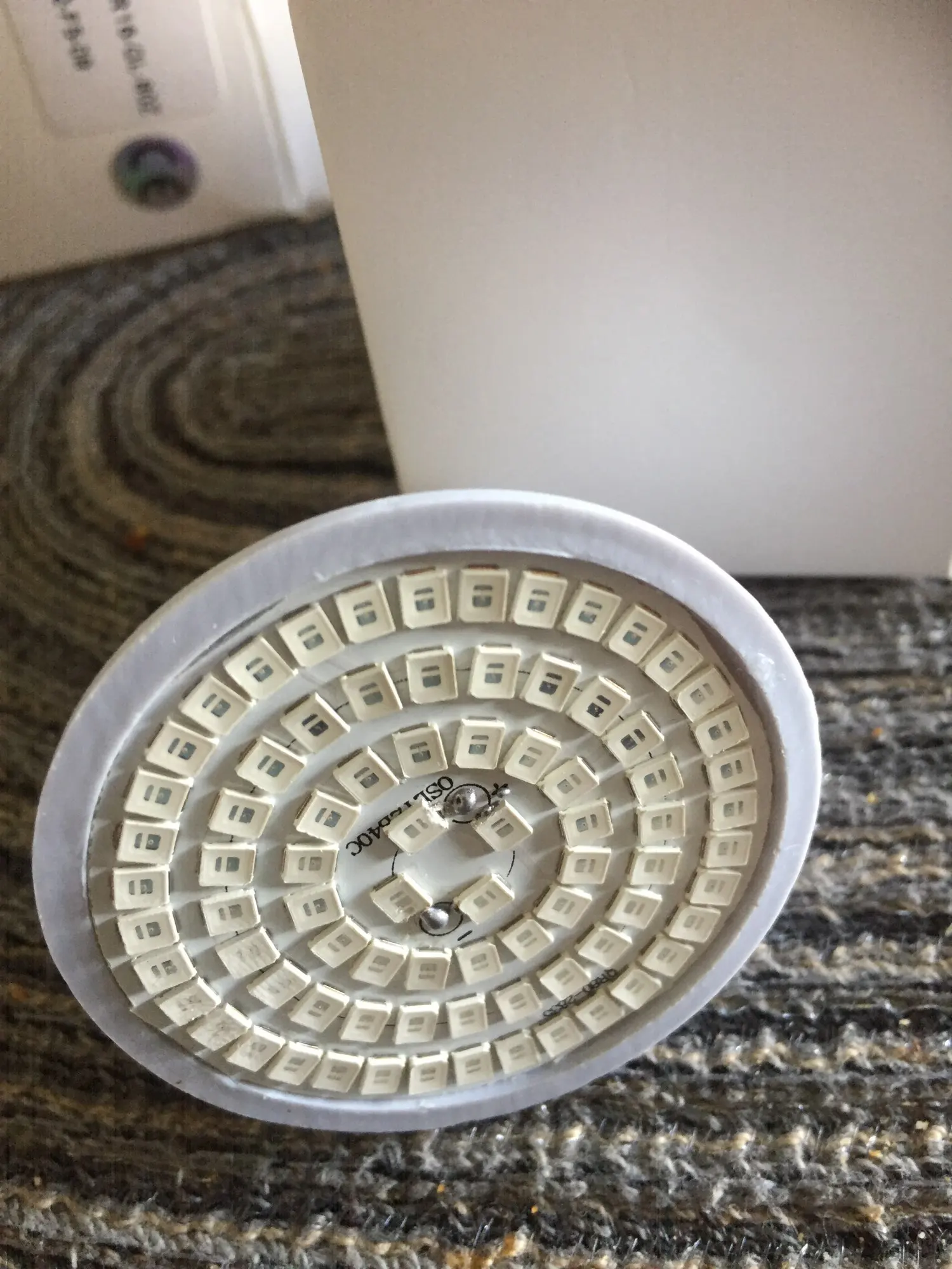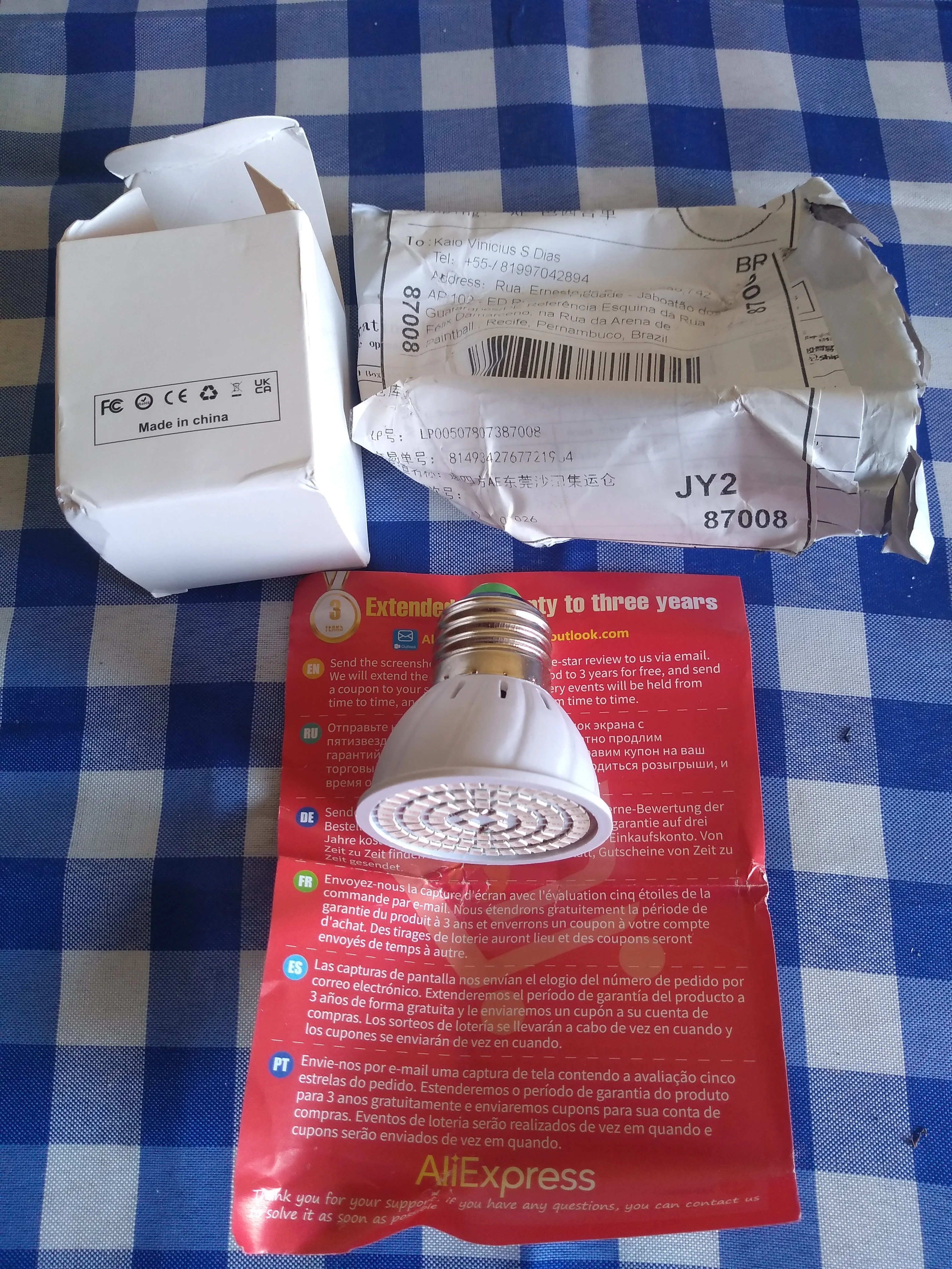 Лампа достаточно яркая, слепит, 5-8вт на вид. Сборка аккуратная. Размер маленький, сантиметров 5 примерно высотой. Есть отверстия для вентиляции. Очень легкая, корпус пластмассовый. С алюминиевыми корпусами обычно долговечные, пластиковые как повезет. Доставка в районе месяца, пришла в коробочке. Для одного-двух небольших растений будет в самый раз.