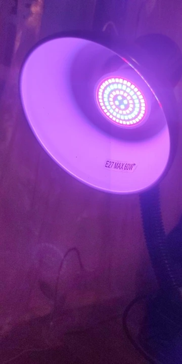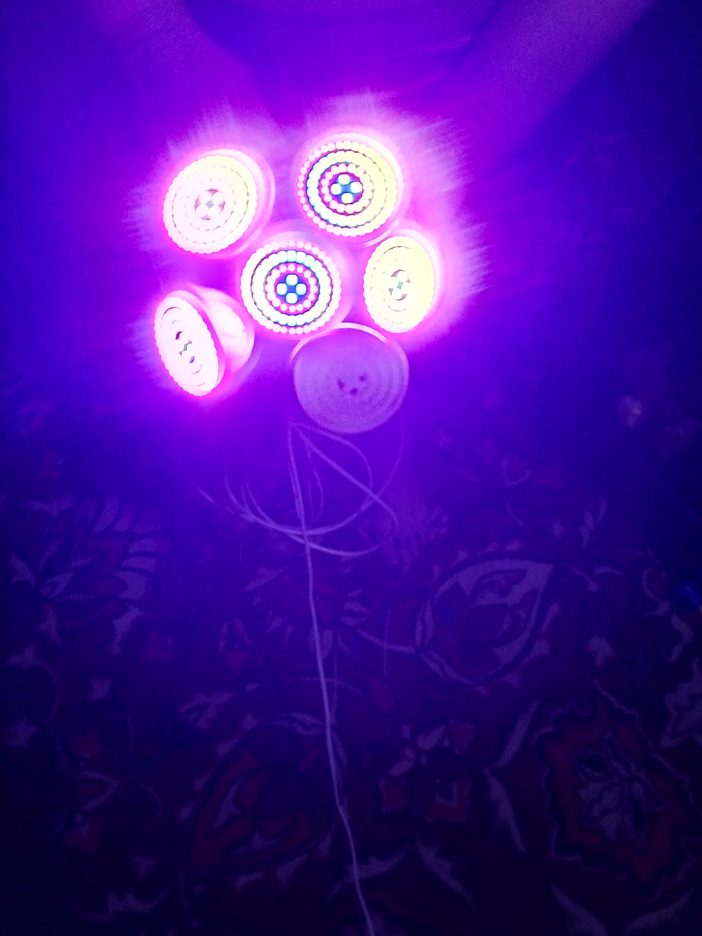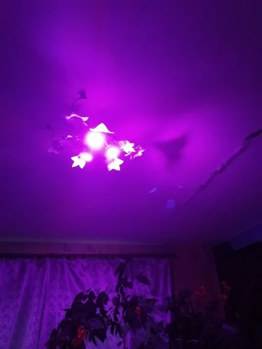 лампочки очень маленькие, светит тускло хватит на подсветку 1го маленького растения или ростка . лампы почти не греют и в 3см температура от лампы поднялась на 3-4 градуса от комнатной . На взгляд светит только синем и красным (камера искажает цвет свечения ) .