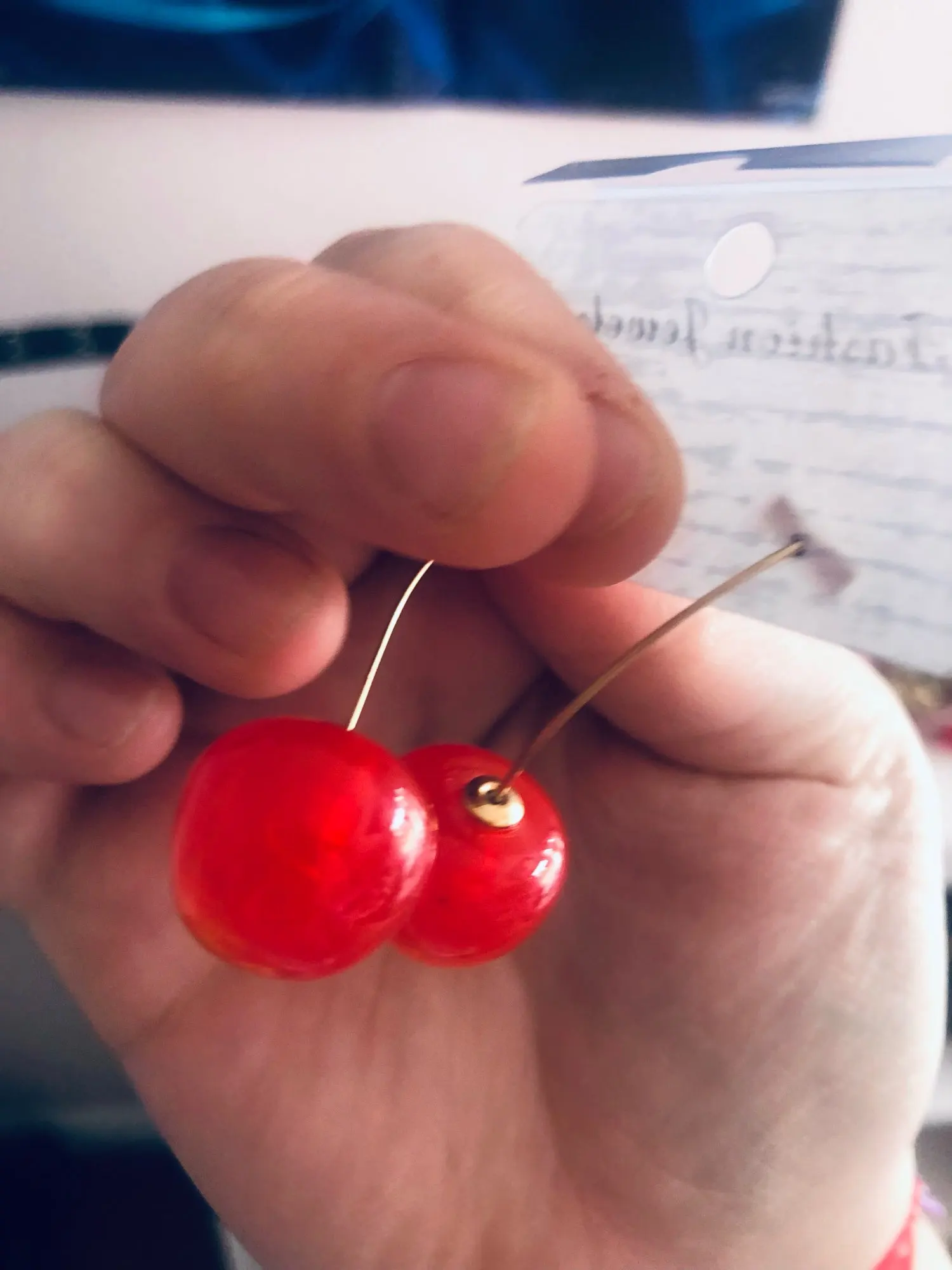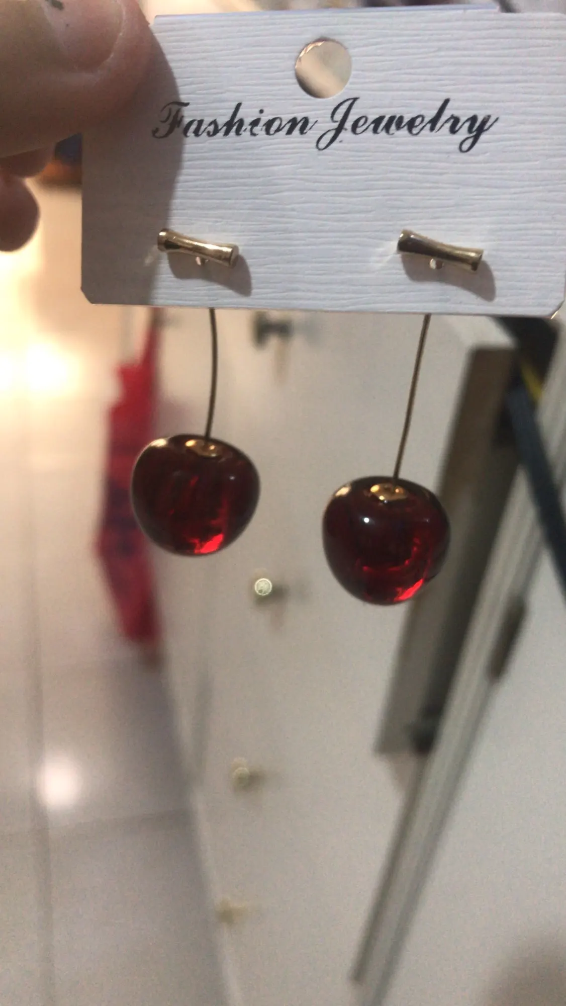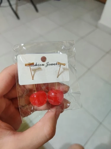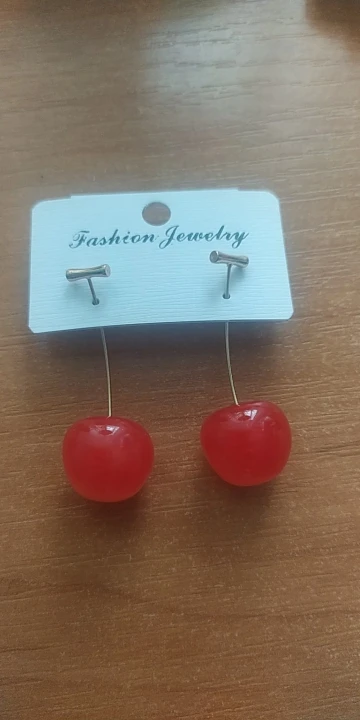 Сережки выглядят как настоящие вишни. Вишневая булочка рада.