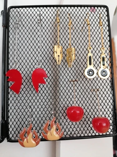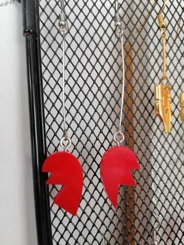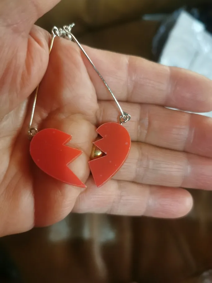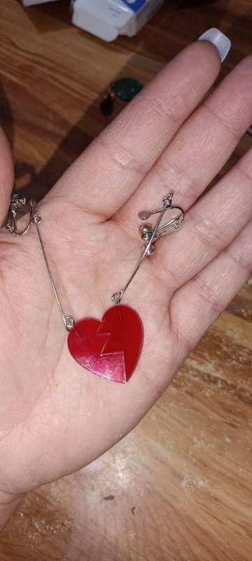 железки, на которых подвешены сердечки, легко гнутся. и на моих сережках части сердец были в одну сторону, то есть когда я их надела - один был острыми концами в лицевую сторону, а другой - гладкой частью. но петелька на которой он крепился легко разжалась и я повернула его, так что в принципе все хорошо