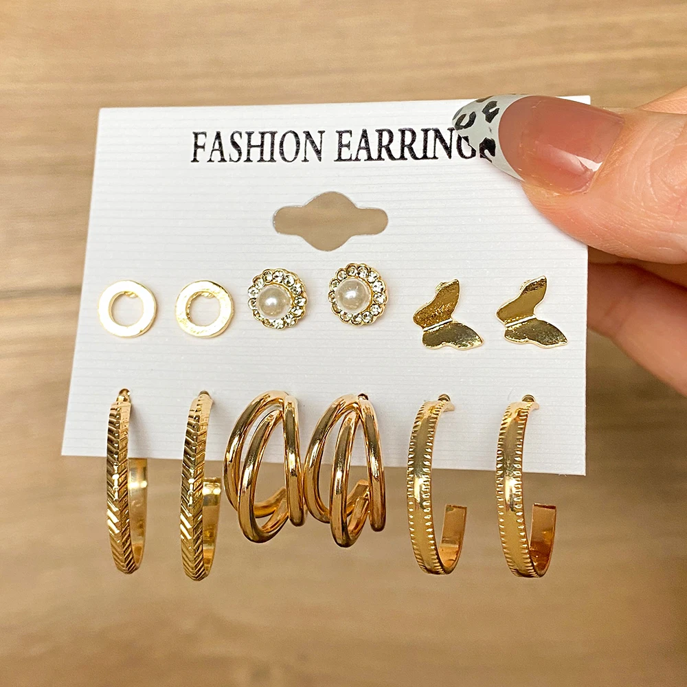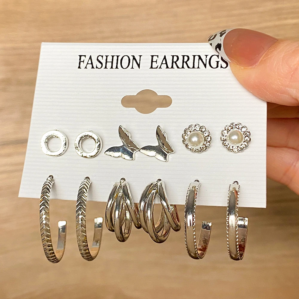Трендовая Золотая Серебряная бабочка самолет обруч Комплект сережек для женщин звезда полумесяц жемчужный обруч Серьги Brincos вечерние ювелирные изделия