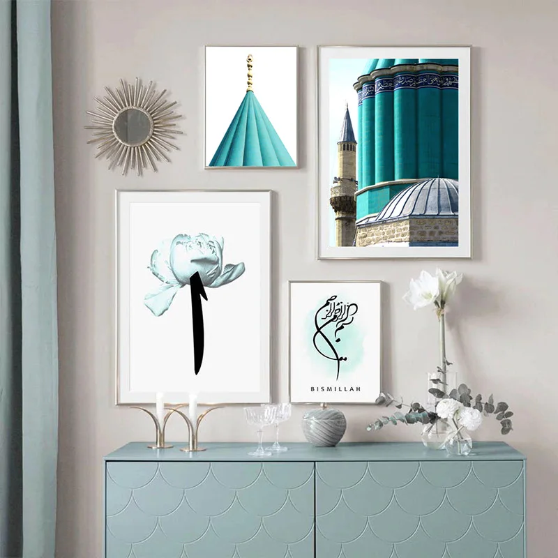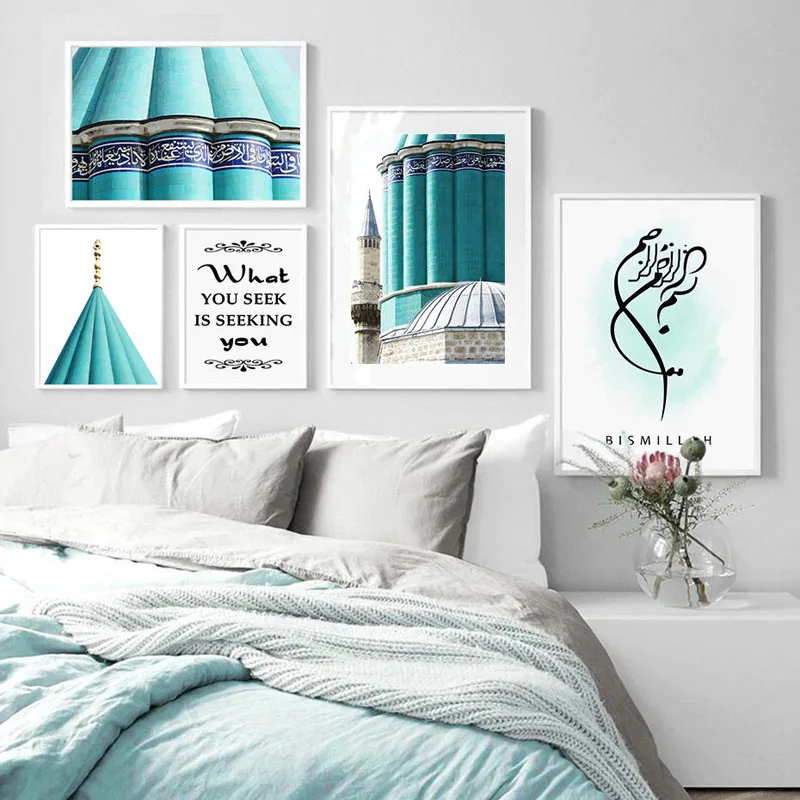 Мусульманские мусульманские плакаты и принты, синие строительные цв...