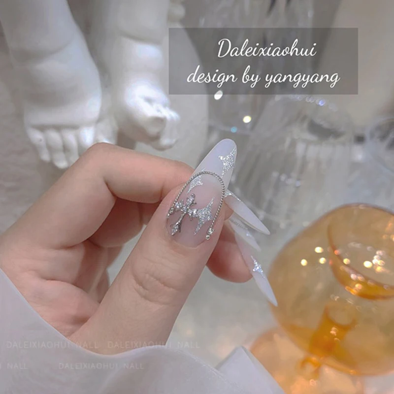 3D наклейки для ногтей, наклейки, искусственное серебро, сердце, Бабочка, французские наклейки, украшение
