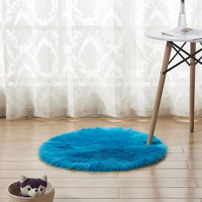 Круглые мягкие Меховые коврики из искусственной овчины для спальни, гостиной, напольный плюшевый ковер, Белый Домашний напольный коврик, коврик, прикроватные коврики