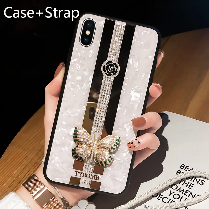 Роскошный чехол со стразами 3D Бабочка для iPhone X XR XS 12 11 Pro...