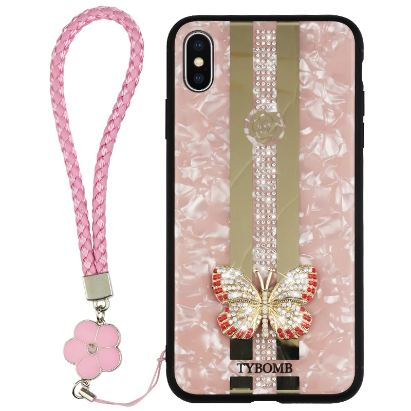 Роскошный 3D чехол-бабочка со стразами для iPhone X XR XS 13 12 11 ...