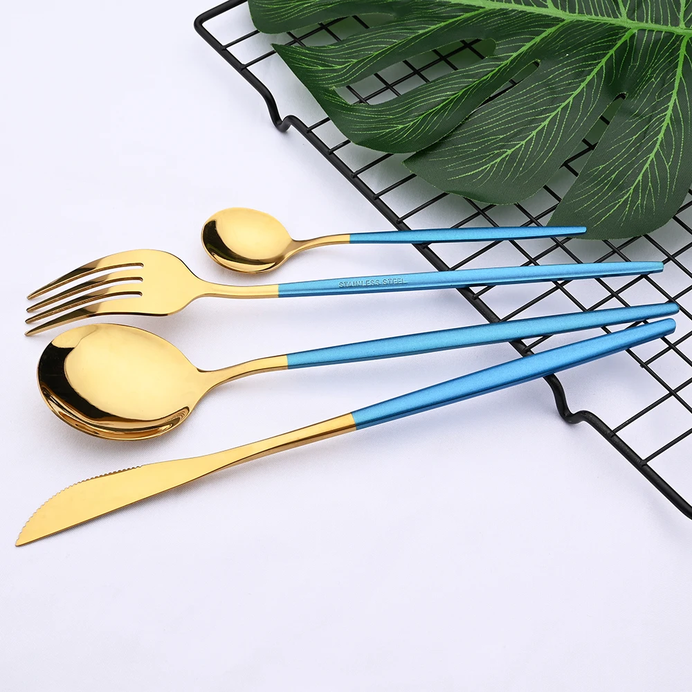 40 шт., набор золотых столовых приборов, столовая посуда из нержаве...