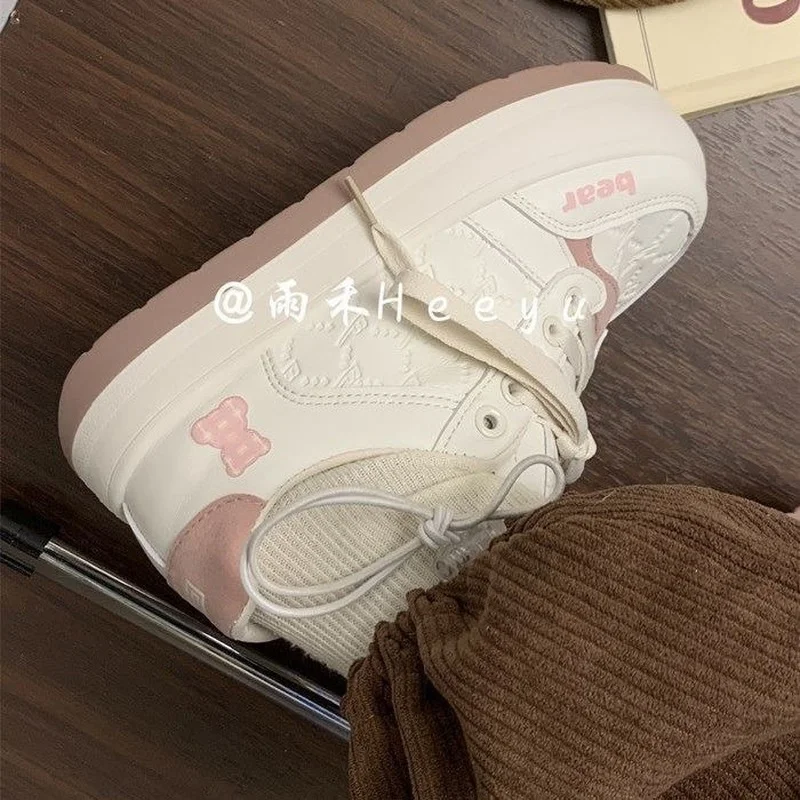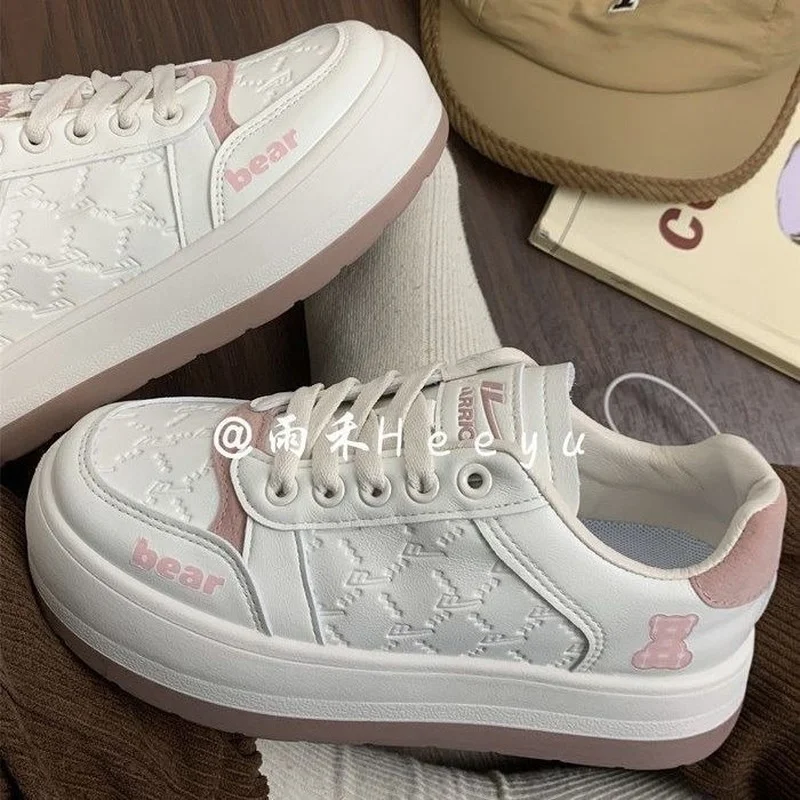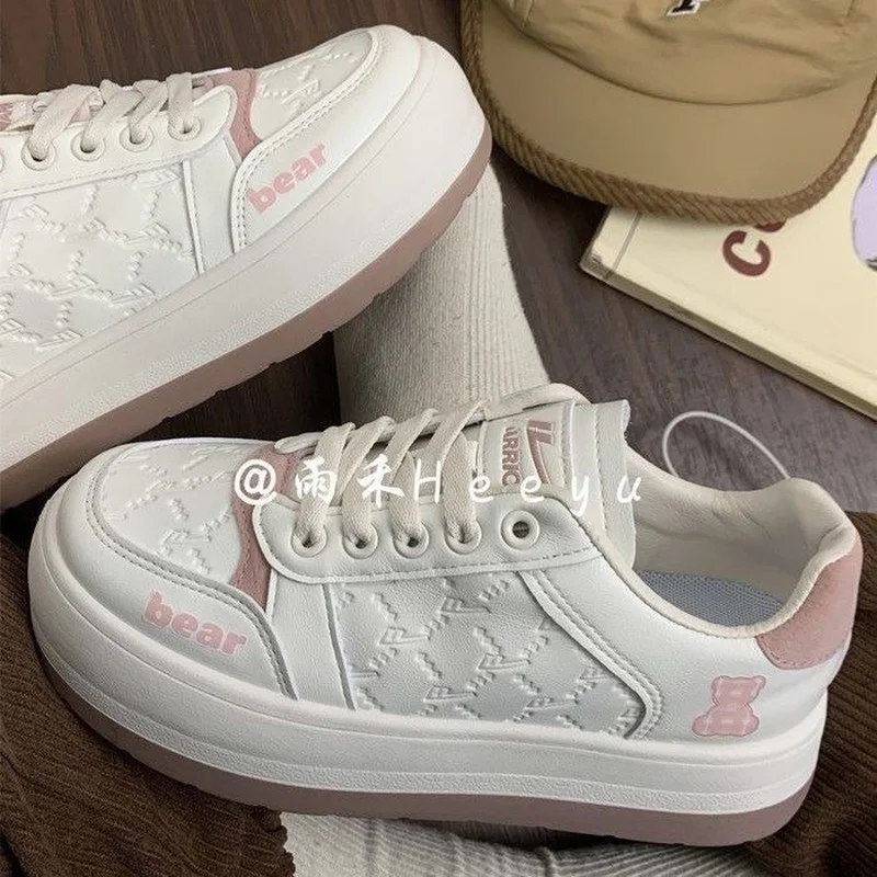 Женские кроссовки HOUZHOU, новинка весны 2022, белая спортивная обувь на платформе, Повседневная Корейская версия, кавайная Вулканизированная подошва в виде пудры