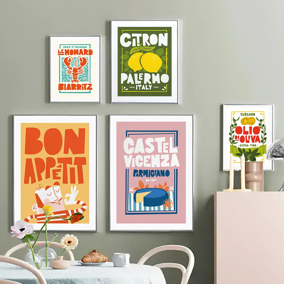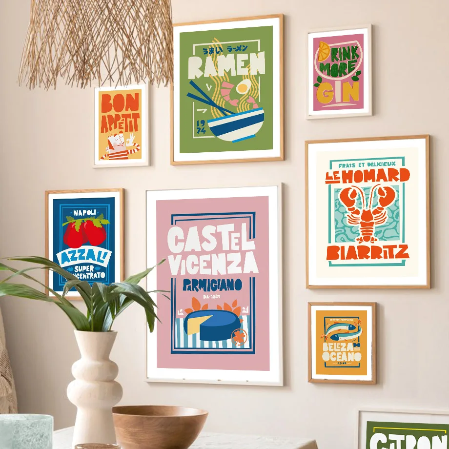 Сардины кофе, японский рамен, итальянский лимон, оливковое масло, помидоры, настенная живопись, скандинавский постер, печатные картины, декор для гостиной