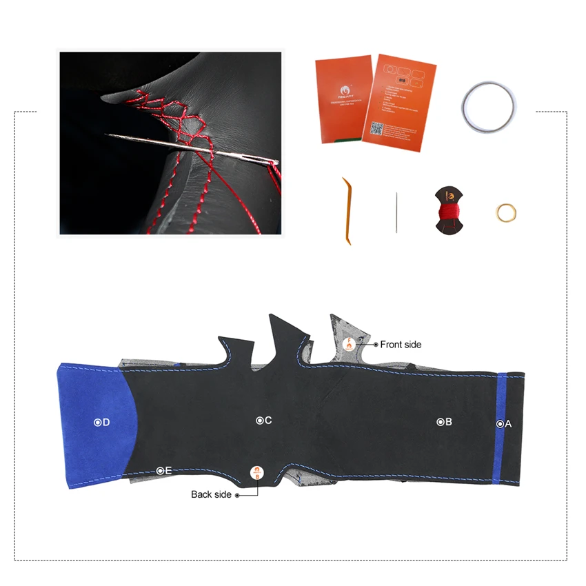 A: черный + красный + желтый кожаный маркерB + C + D: черная Алькантара #9040E: Красная Нить