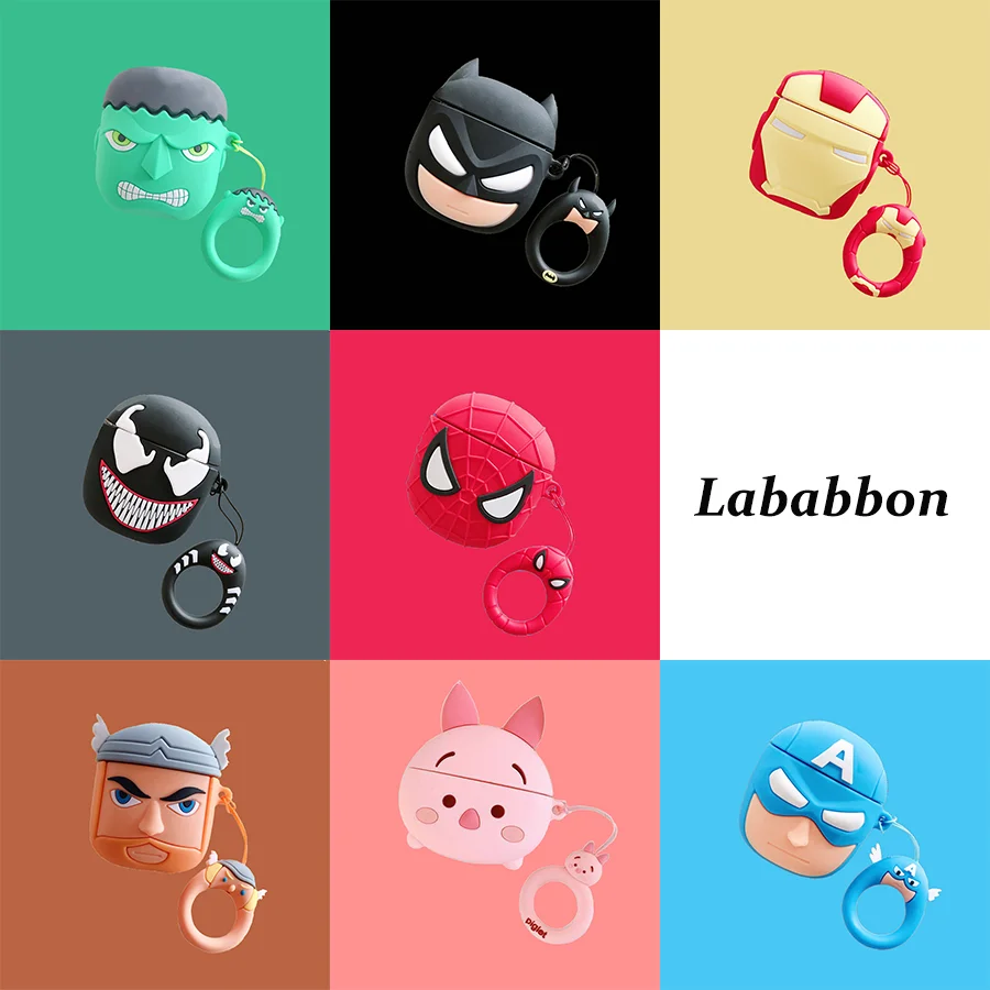 Чехол Labobbon для airpod. Мультяшный стиль. Защитный чехол для наушников, силиконовый 3D чехол для наушников с ремешком