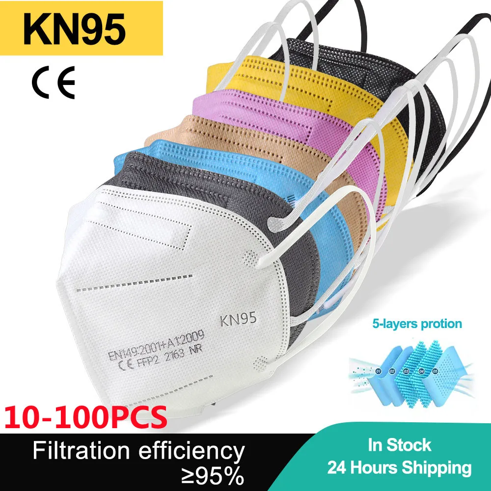 Маски KN95 5 слоев, 10-100 шт., маски FFP2, FP2 цвета, многоразовая...