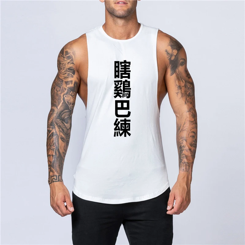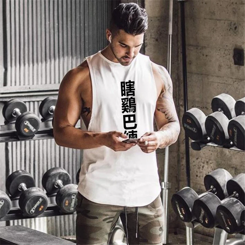 Футболка мужская без рукавов, свободный хлопковый спортивный жилет для фитнеса, с разрезом на рукавах, с принтом, на лето