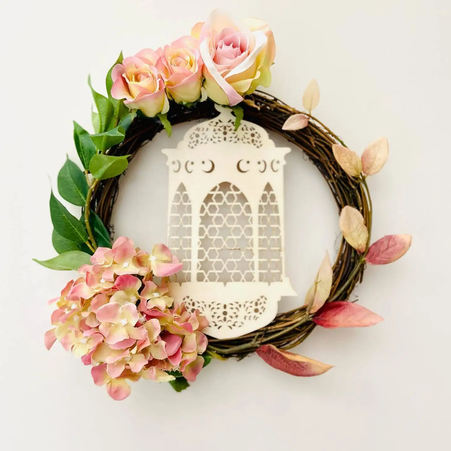 ИД Рамадан, деревянные подвесные украшения для Рамадана, венок сделай сам, товары для мусульманской вечеринки, металлическое кольцо, венок, украшения для вечеринки