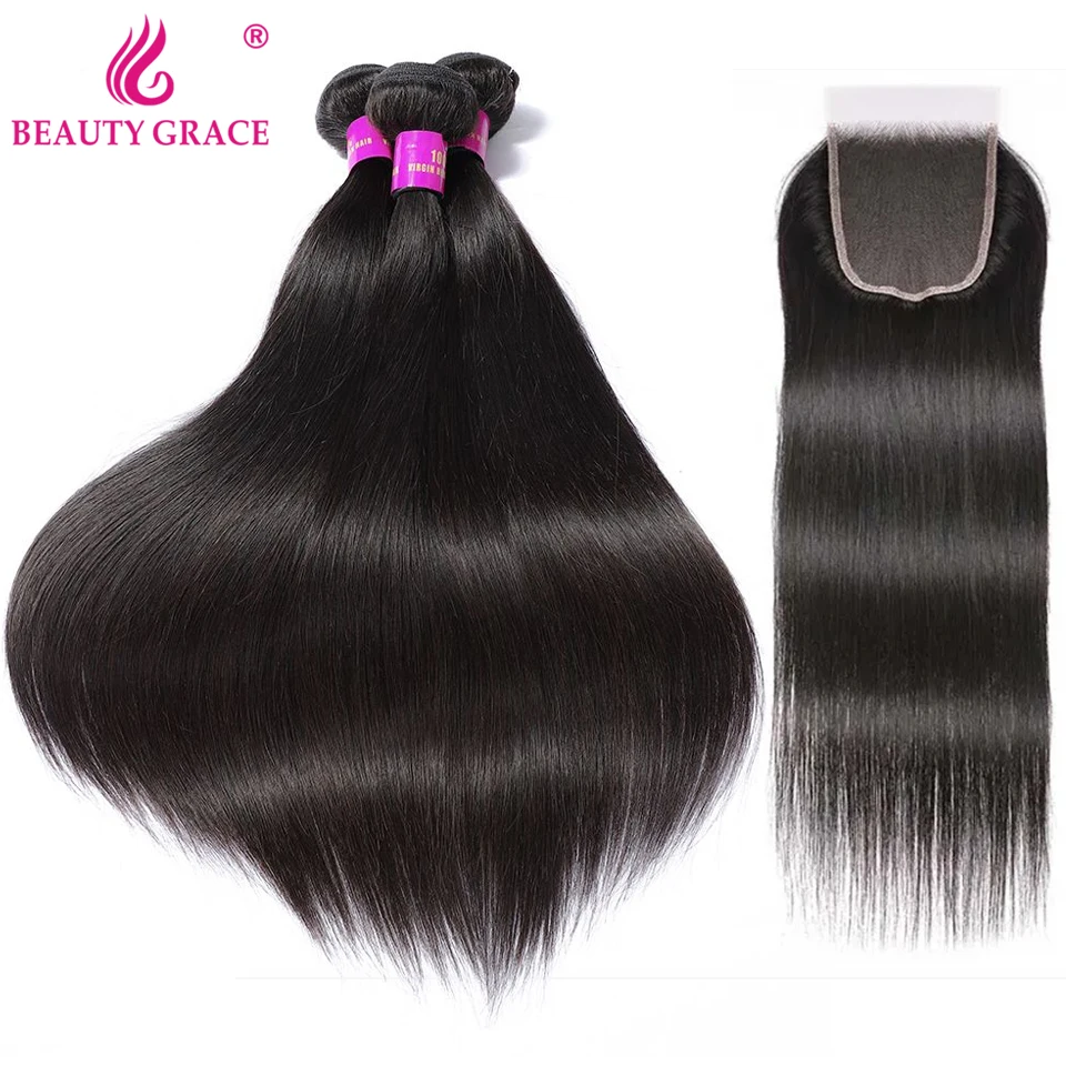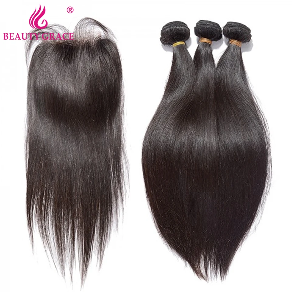 Прямые пучки из человеческих волос на сетке 4 х4, 3 пупряди с застежкой, бразильские перуанские волосы спереди с пряди