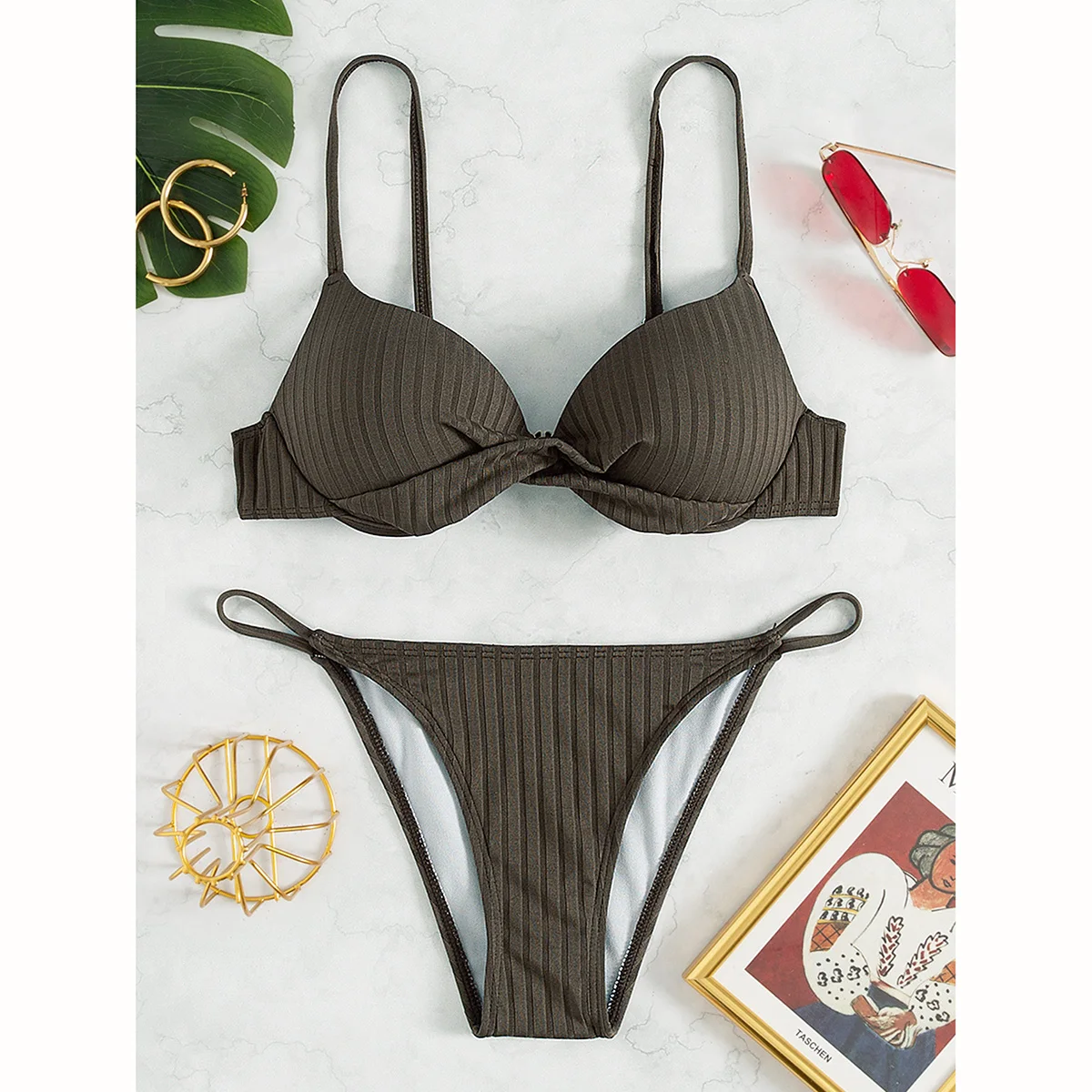 Соблазнительное бикини 2022, комплект бикини в рубчик с волнистыми ...