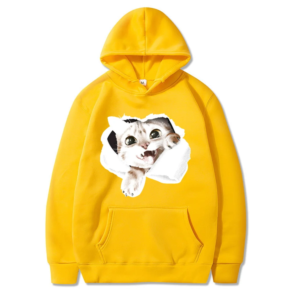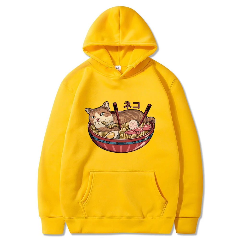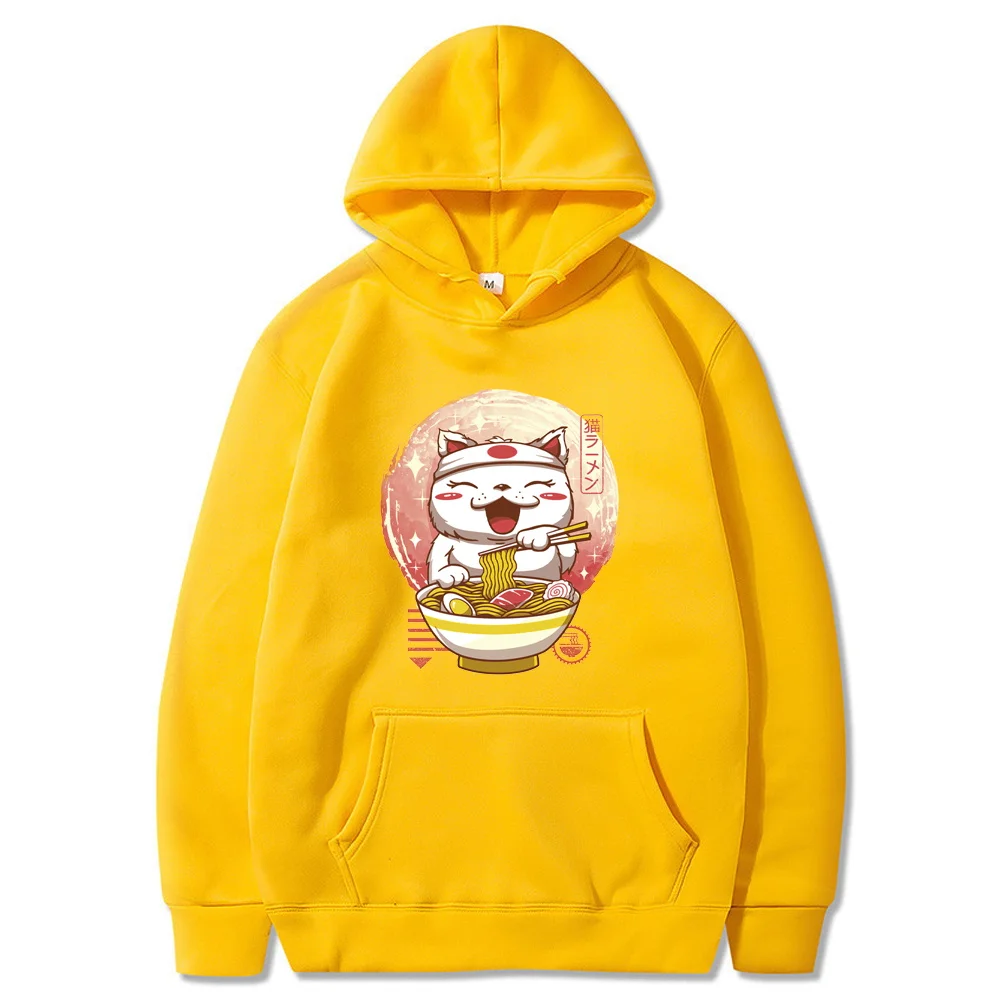 Толстовки с капюшоном для мужчин и женщин, желтый пуловер с японским принтом кота, модные парные кофты с длинным рукавом, уличная одежда, осень 2022