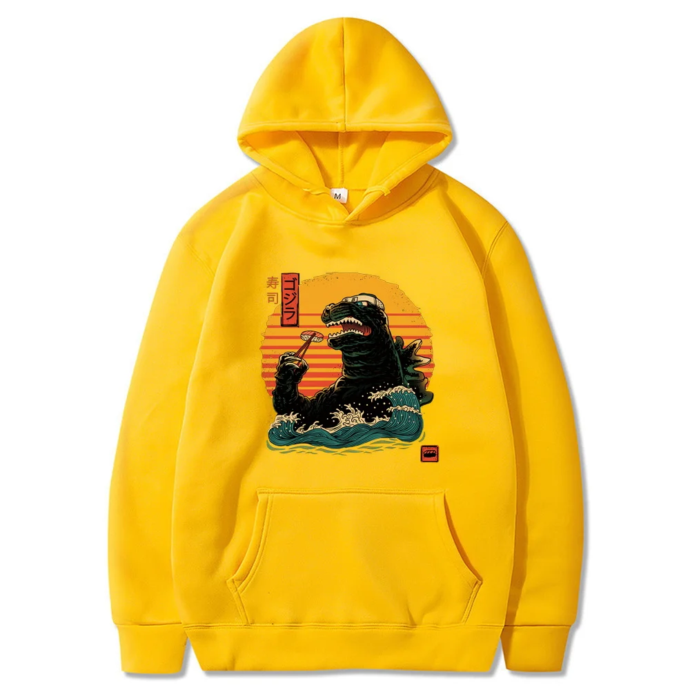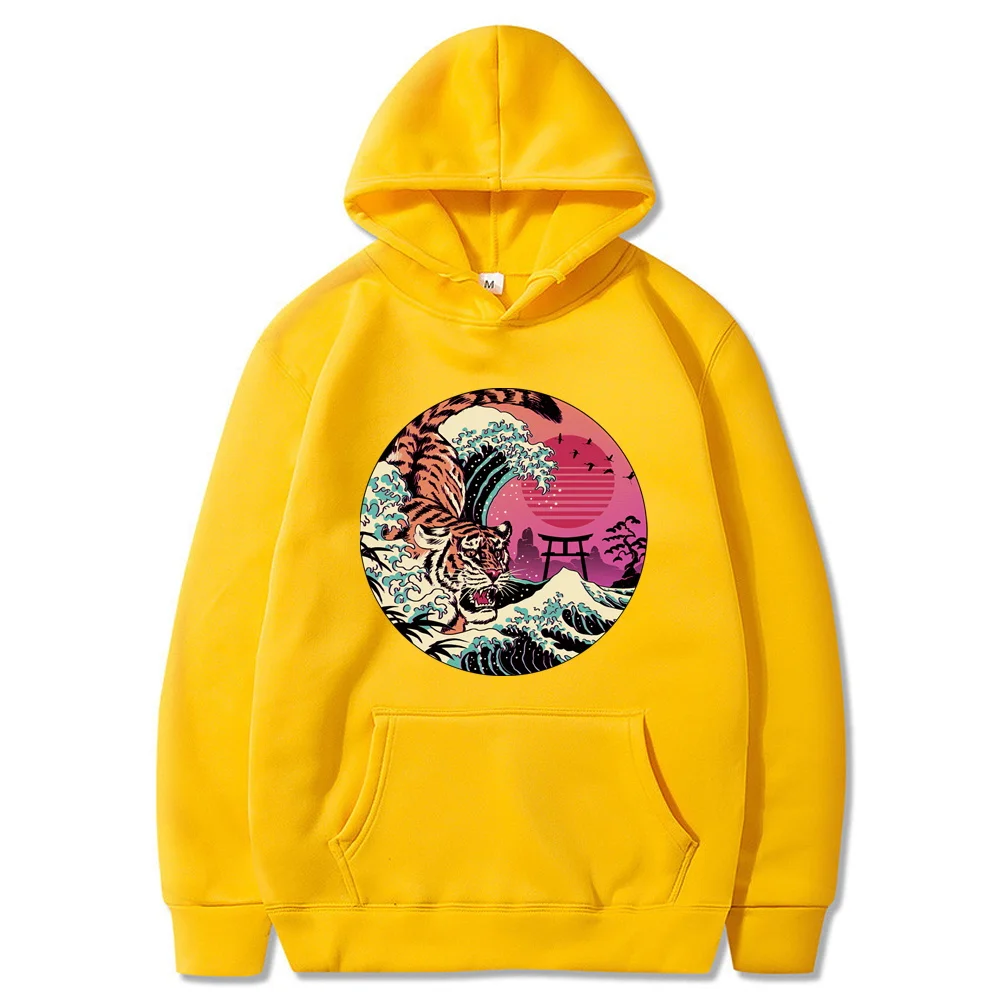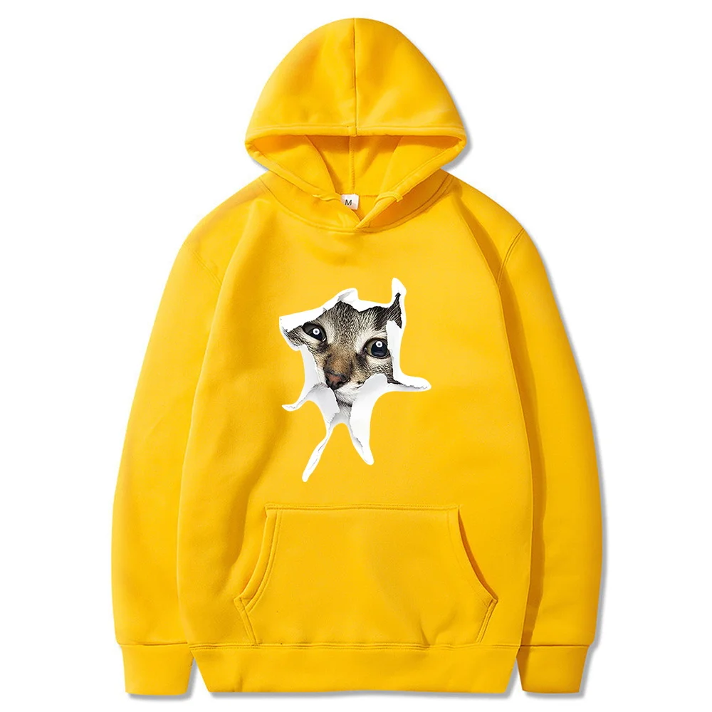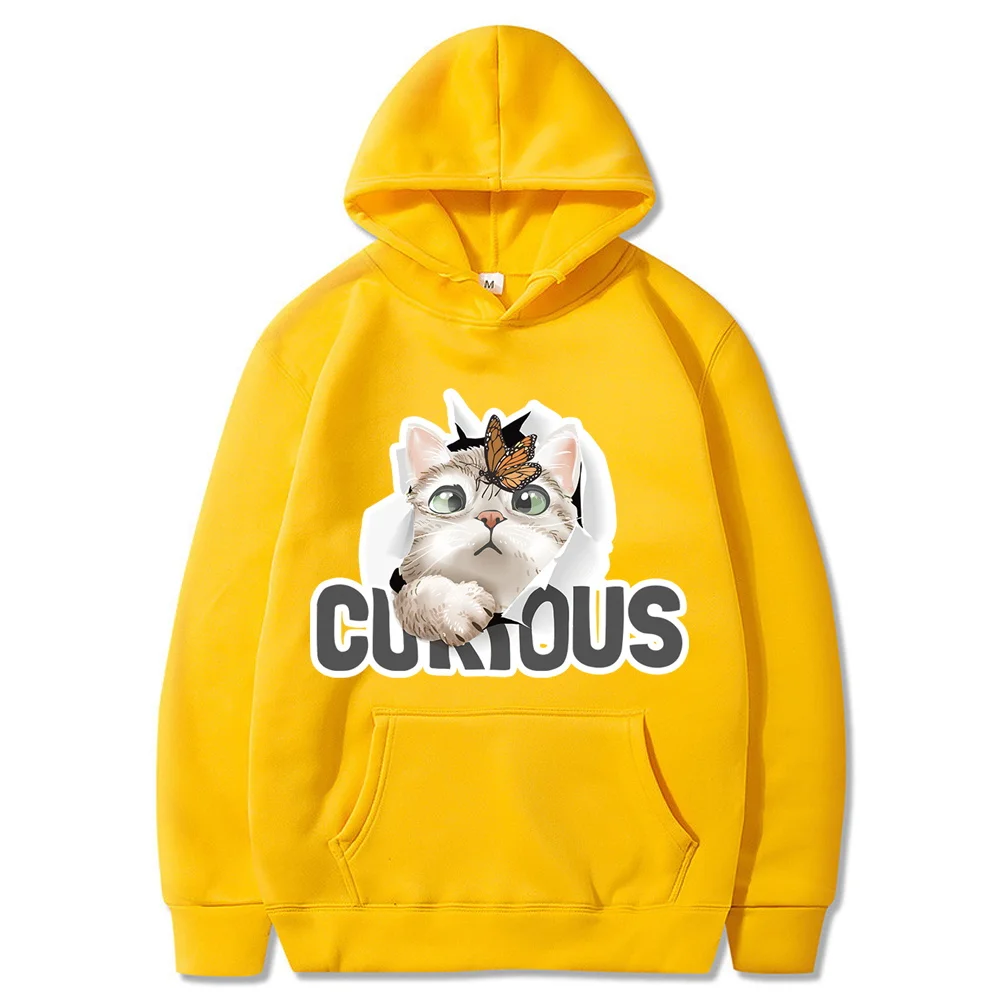 Толстовки с капюшоном для мужчин и женщин, желтый пуловер с японским принтом кота, модные парные кофты с длинным рукавом, уличная одежда, осень 2022