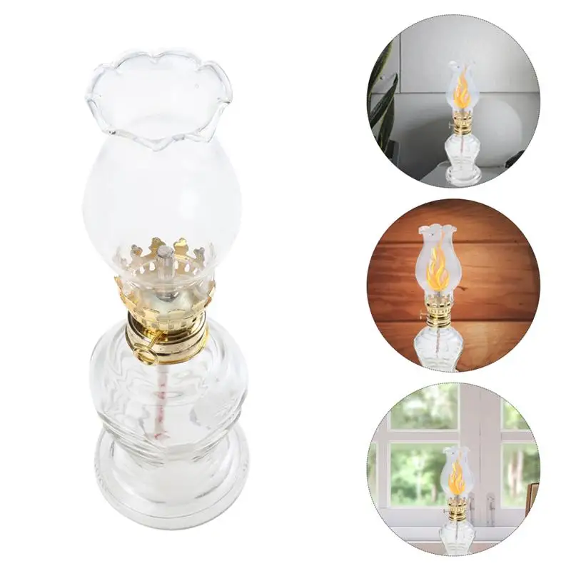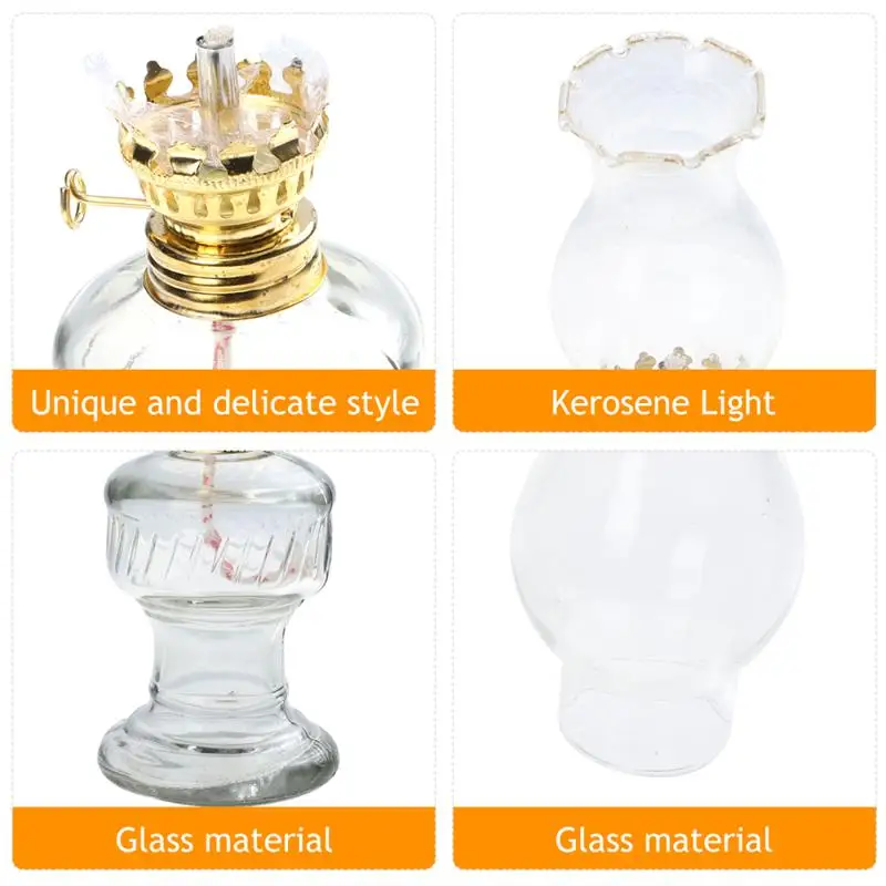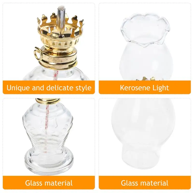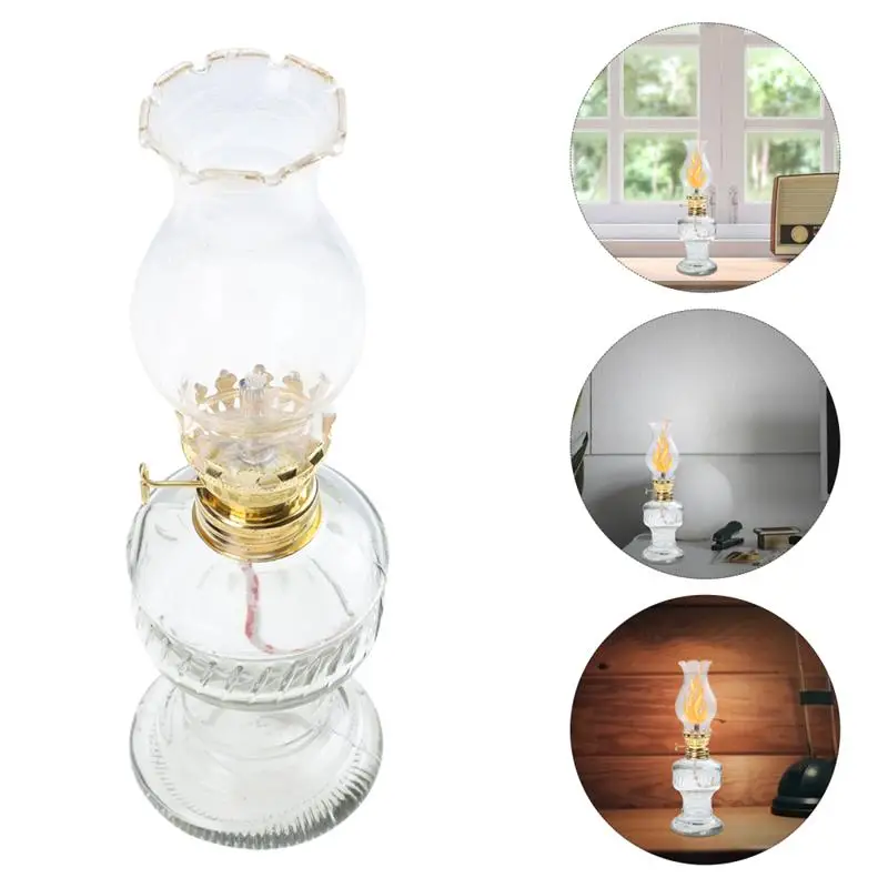 1 шт. домашняя масляная лампа в стиле ретро, стеклянная крышка, керосиновая лампа, уникальный масляный свет с фитилями