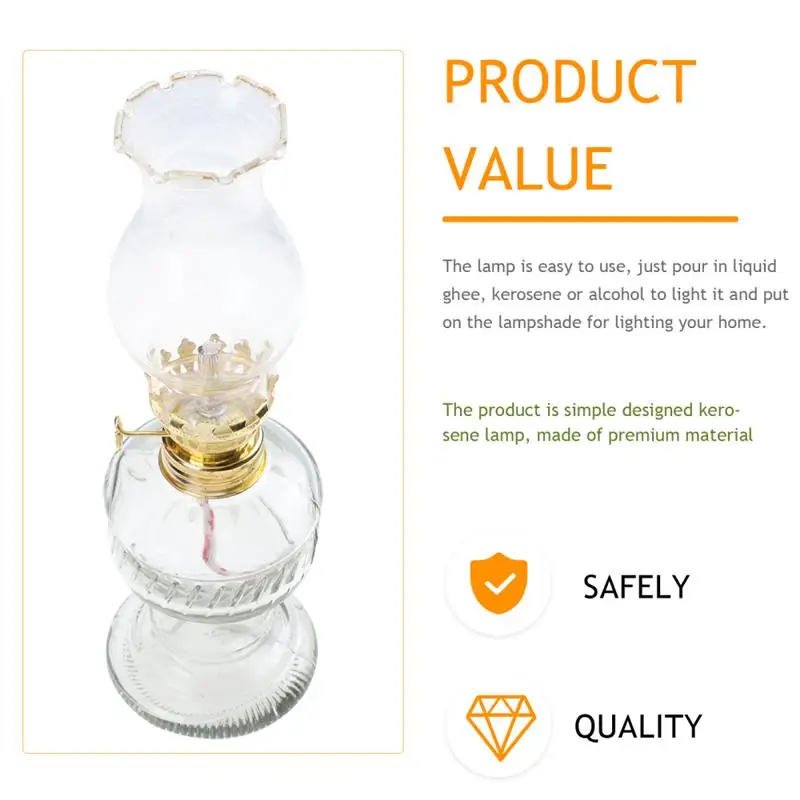 Изделие представляет собой простую керосиновую лампу, изготовленную из высококачественного материала, прочная и долговечная, используется для длительного использования. Масляная лампа тонкая и красивая, хороший выбор для вас. Его можно зажечь спиртом или керосином, безопасно для использования.