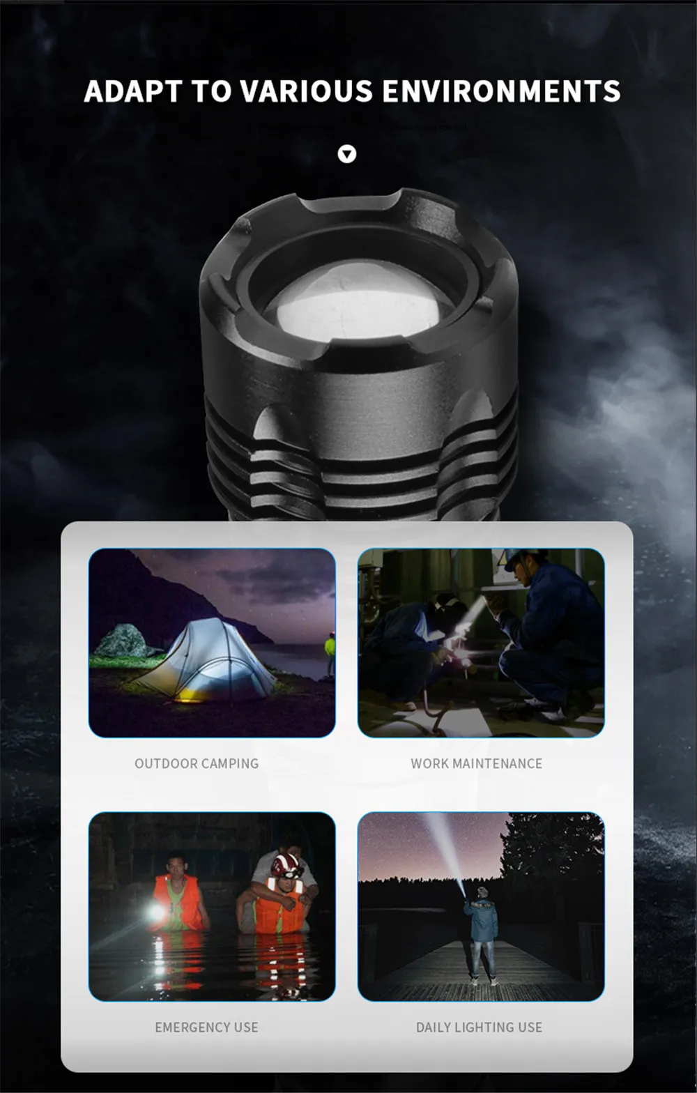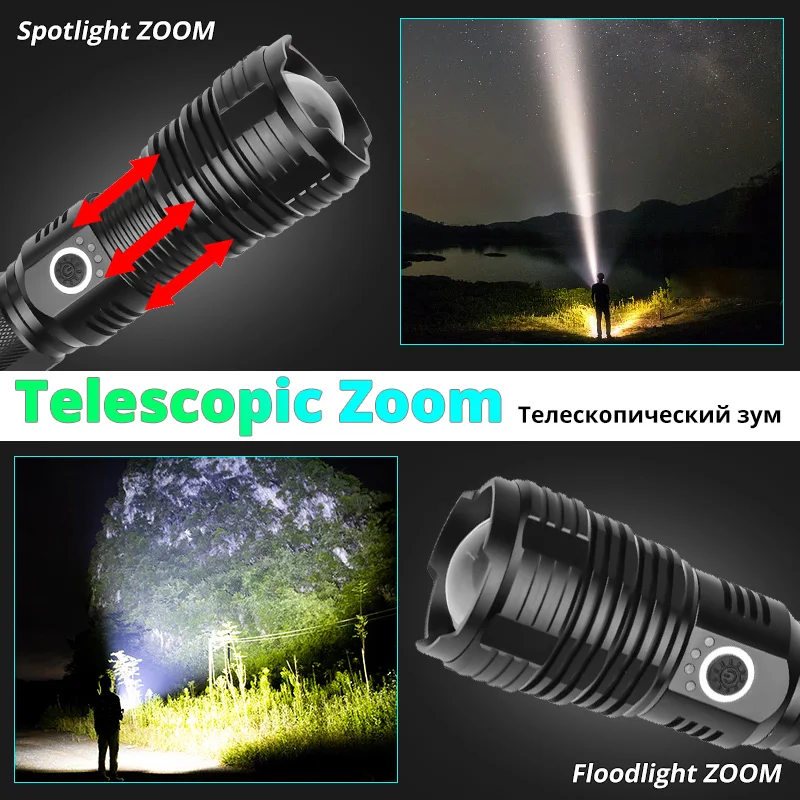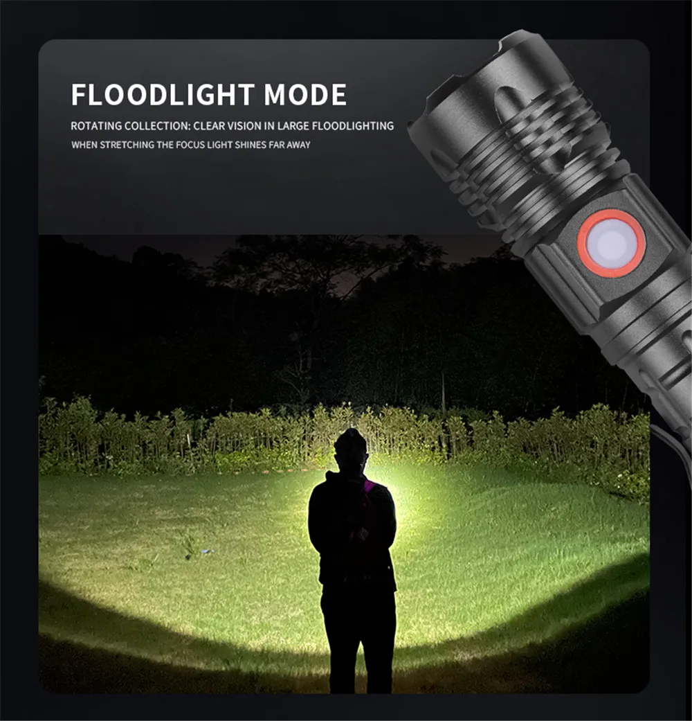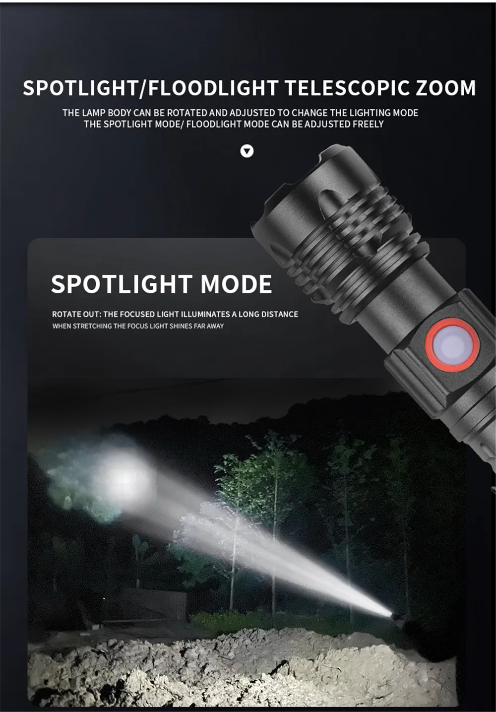 1915B, XHP70 лампа бисер, пятискоростной, телескопический зум, TYPE-C зарядки с дисплеем питания, использовать 1*18650 или 1*26650