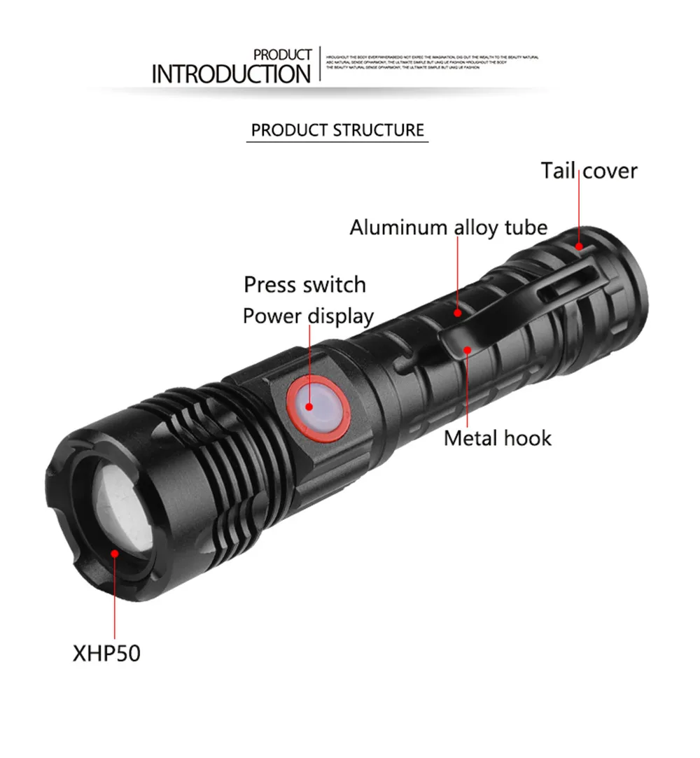 Высокая мощность и качество XHP50.2/XHP70 LED, длительный срок службы (100000 часов)Этот товар является сопротивлением алюминиевого сплава тактический светодиодный фонарьУдарная часть головы может быть использована для других целей.Внутренняя проводка применяет высокоэффективный усилитель цепи, и может использовать батареи в наибольшей степени.4. Линзы: хорошая светопропускаемость, не легко повредить, прочный алюминиевый атаковать голову, чтобы защитить объектив от истирания;Фиксированный фокус: хороший эффект фокусировки, большое расстояние облучения;Средний переключатель: высококачественный натуральный резиновый материал, нескользящая поверхность, Коснитесь переключателя, чтобы переключить режим освещения, нажмите и удерживайте переключатель, чтобы выключить свет;Контакт батареи: пружинный контакт батареи имеет хорошую электропроводность и эффективно предотвращает плохой контакт.Подходит для любителей спорта на открытом воздухе, чтобы сделать некоторые виды активного отдыха, такие как охота, Велоспорт, альпинизм, кемпинг и т. Д.