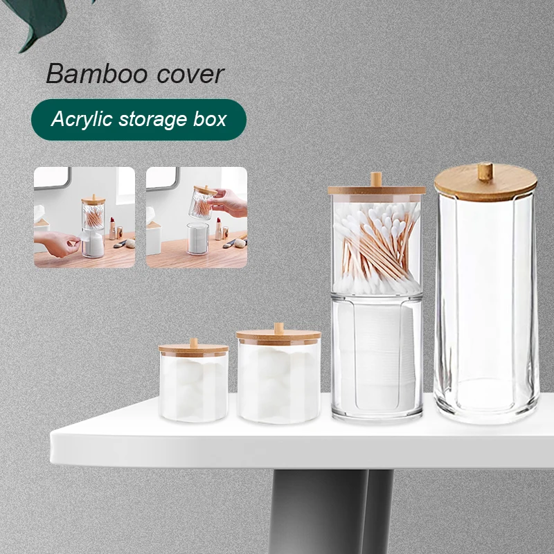 Новая коробка для хранения ватных тампонов, Бамбуковая крышка, акри...