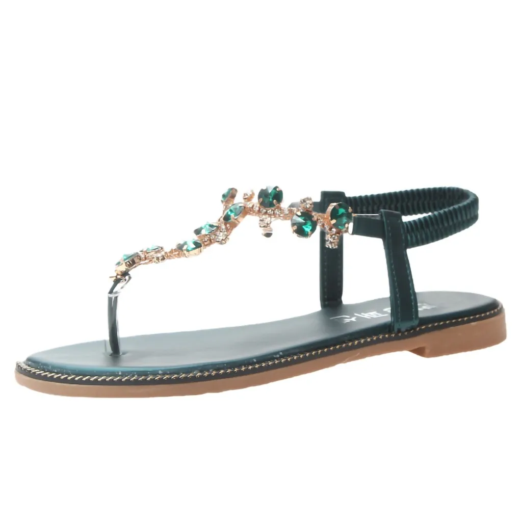 Женские Вьетнамки; Босоножки с Т-образным ремешком Тип с открытым носком Стразы с плоским дном; Римские сандалии; Сандалии с ремешками