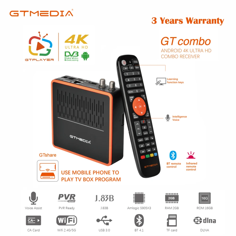 ТВ-приставка GTmedia, спутниковый ресивер GT Combo Iptv Box Android 9,0, Смарт ТВ-приставка с поддержкой DVB S2X DVB T2, кабель ISDBT Ccam, Испания