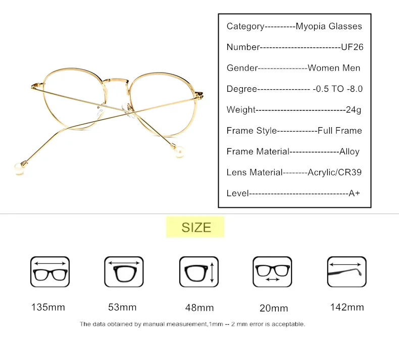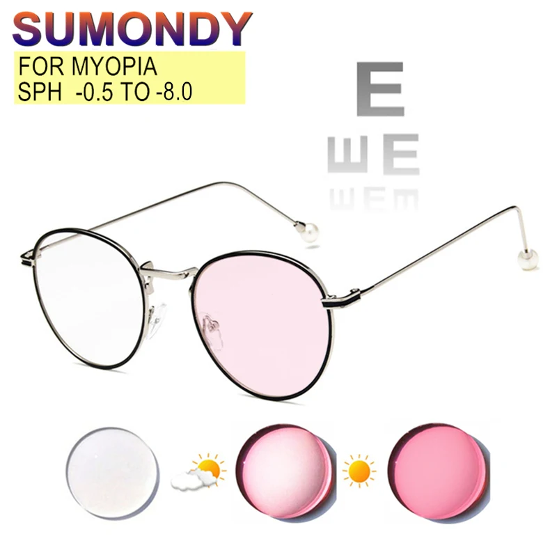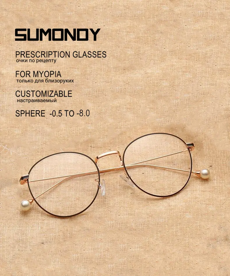 SUMONDY Рецептурные очки для близоруких-0,5 to -8,0 женские круглая оправа из сплава очки для близорукости, Индекс 1,56 1,61 1,67 UF26