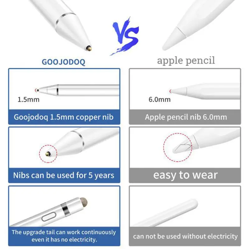 Этот активный стилус для ipad широко используется для большинства емкостных устройств с сенсорным экраном, совместимость с устройствами iOS (для iPad Pro iPad Mini iPad Air iPhone 11/Pro max для iPhone X / 8/8 Plus / 7/7 Plus / 6s/6s Plus /5/5s/5 SE / 4/4s). Абсолютно Лучшая экономичная Замена для Apple Pencil. Не совместим с системным устройством Microsoft windows.