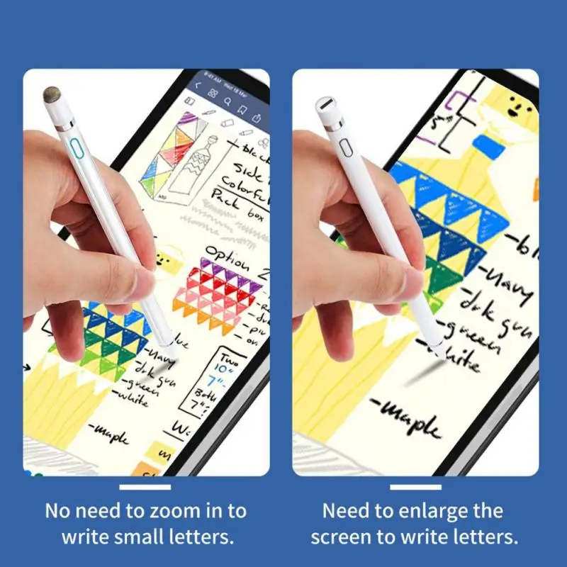 1,5 мм тонкой стилус с эластичной меди наконечник обеспечивает более точный и чувствительный рабочие характеристики, а также улучшенный контроль по отношению к экраны. В то время как наконечник из чувствительной волоконной сетки защищает устройство от царапин, отпечатков пальцев или жира, идеально подходит для аварийного резервного копирования для отключения питания. Не поддерживает прямые линии.