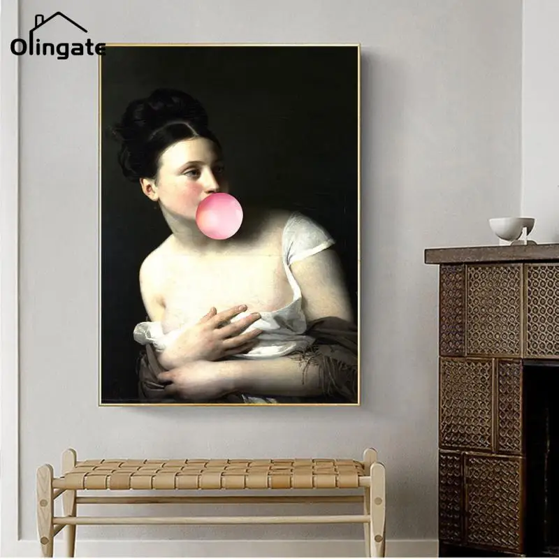 Забавная Женская жевательная резинка Картина на холсте пользователь...