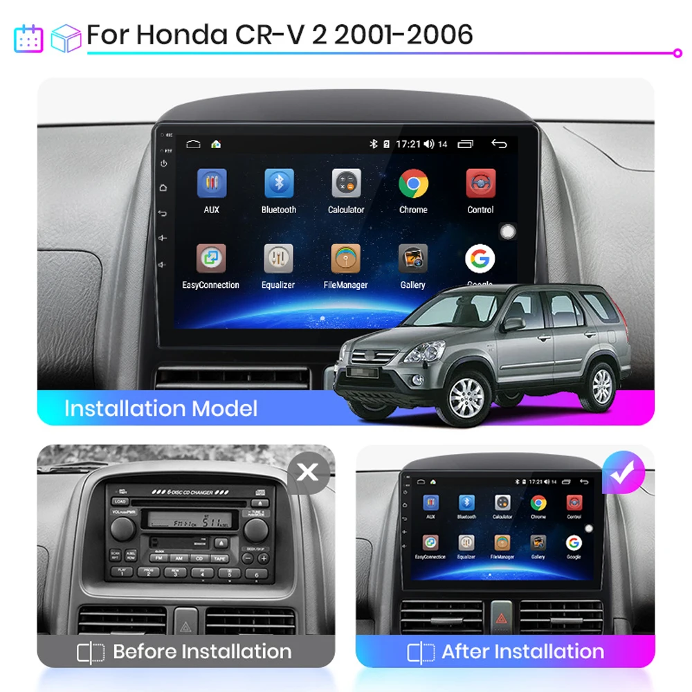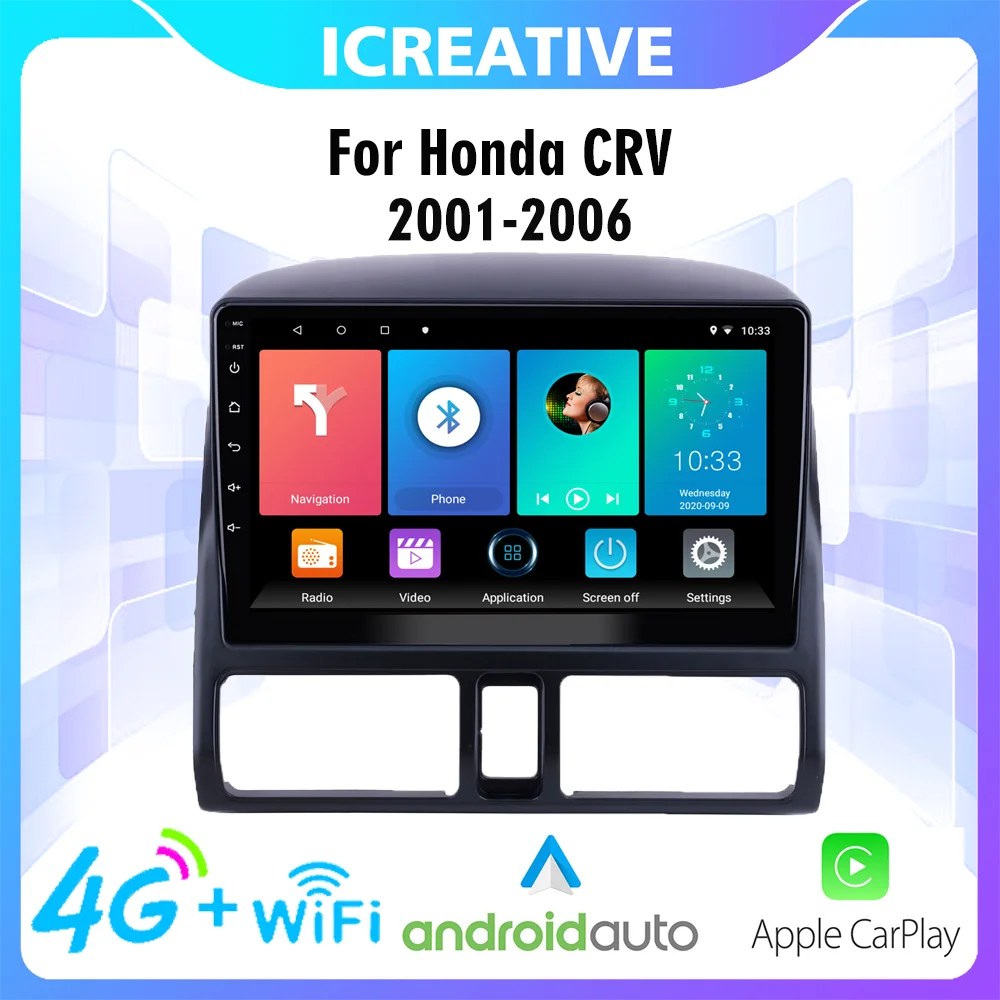 Автомобильный радиоприемник, мультимедийный плеер 2 Din 9 "Android 4G Carplay, Авторадио, навигация, стерео, Wi-Fi, GPS для Honda CRV CR-V 2001-2006