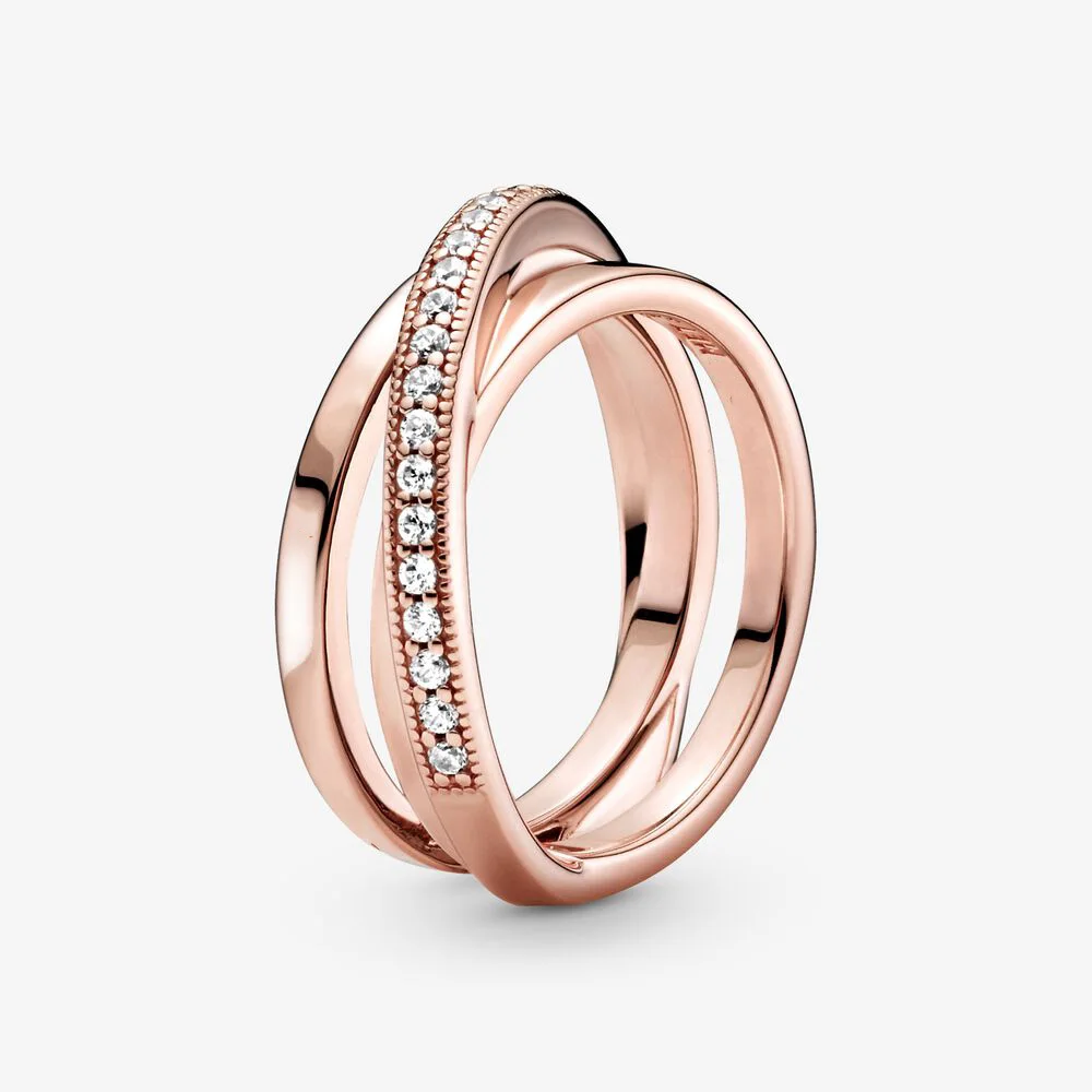 Оптовая продажа, кольцо из розового золота с блестящим тройным кольцом для женщин, роскошное красное кольцо солитер, ювелирные изделия сделай сам