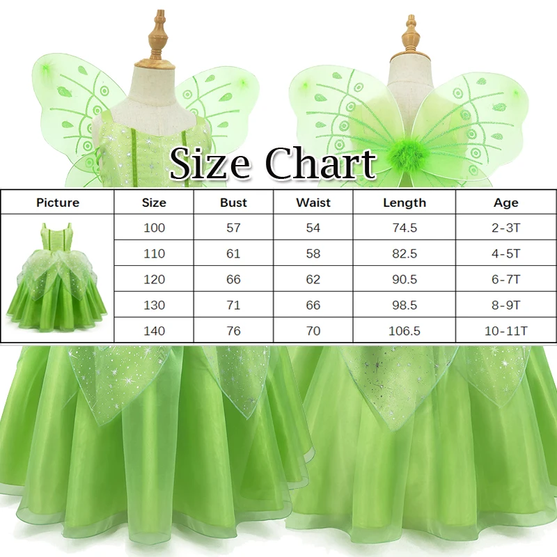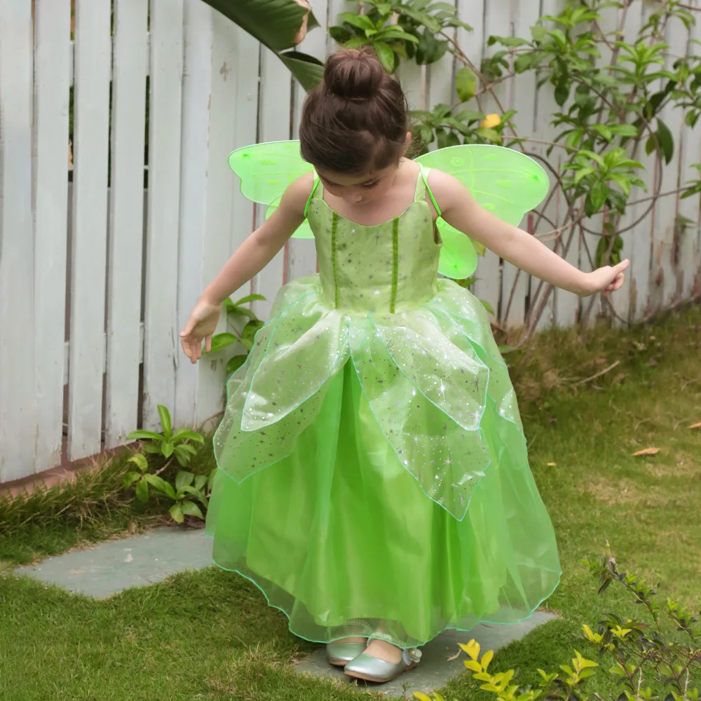 Tinkerbell, зеленое сказочное платье принцессы, косплей, для вечевечерние, для девочек, аксессуары с крыльями