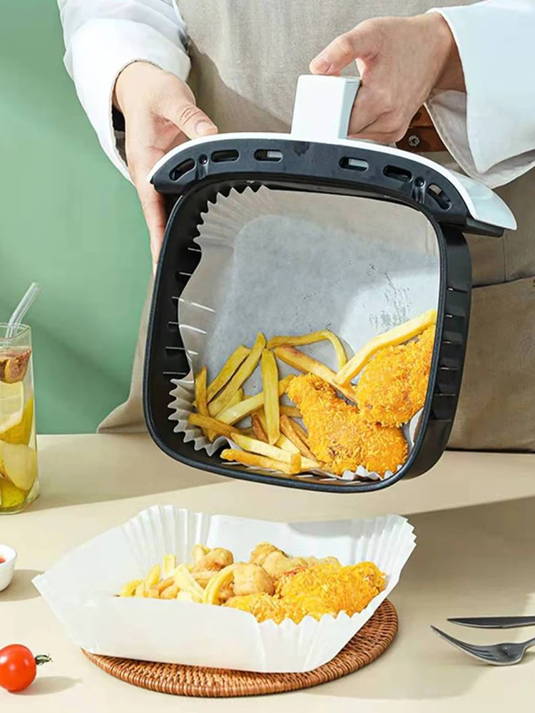 5. Широкое использование: воздушные бумажные вкладыши для фритюрницы подходят для воздушной фритюрницы, микроволновой печи, духовки, пароварки,