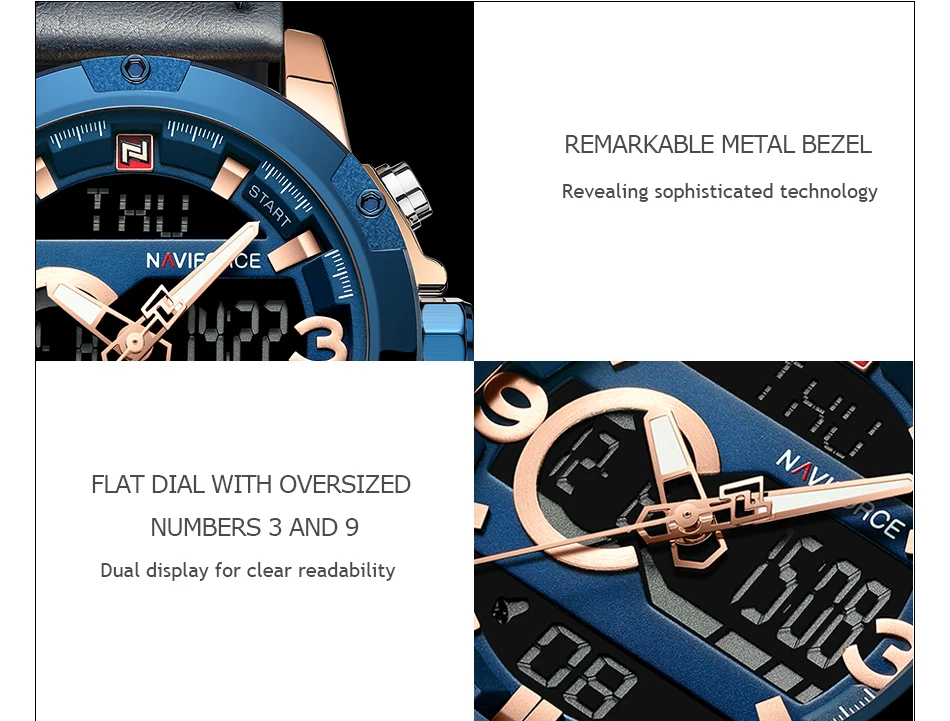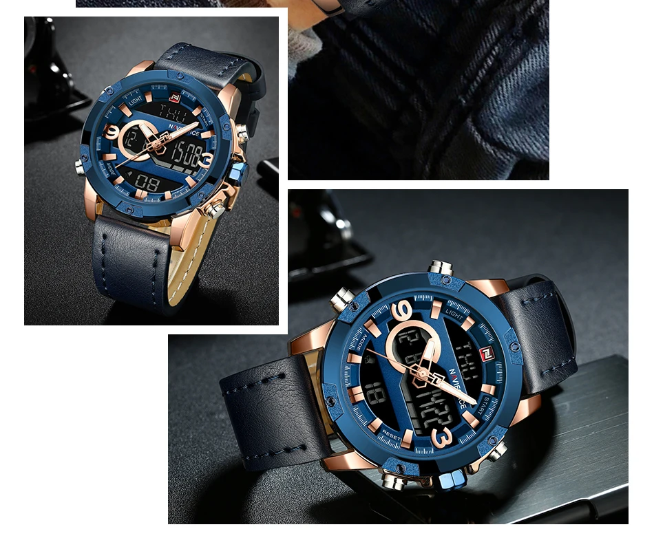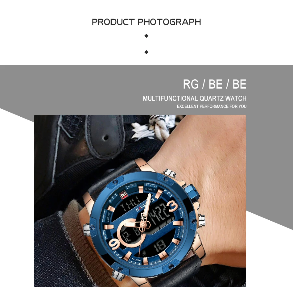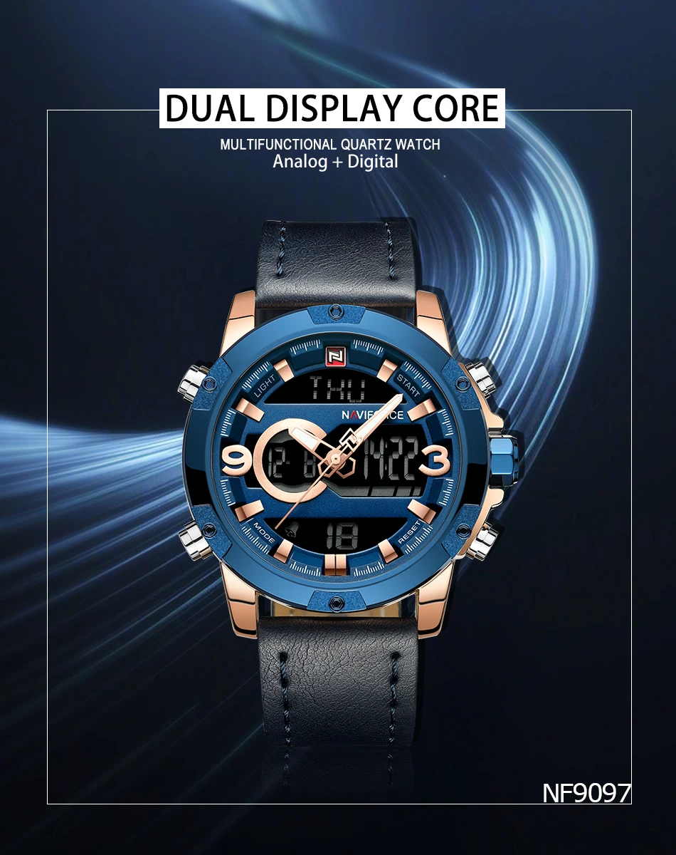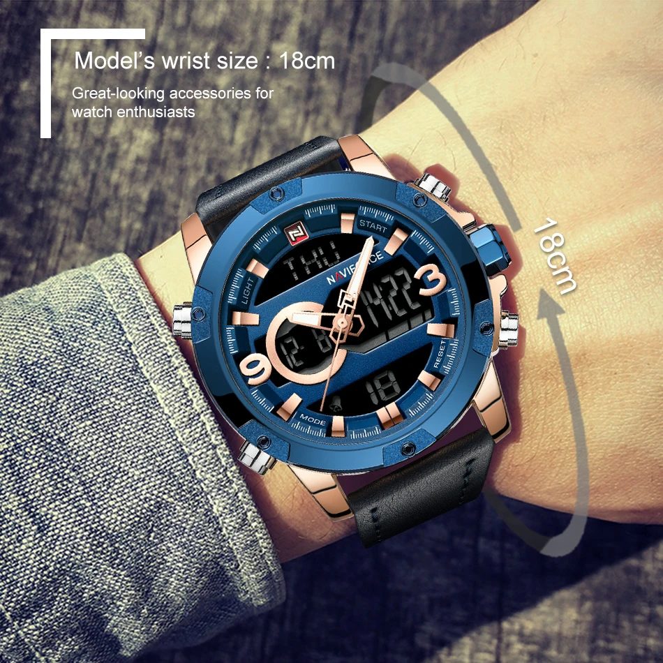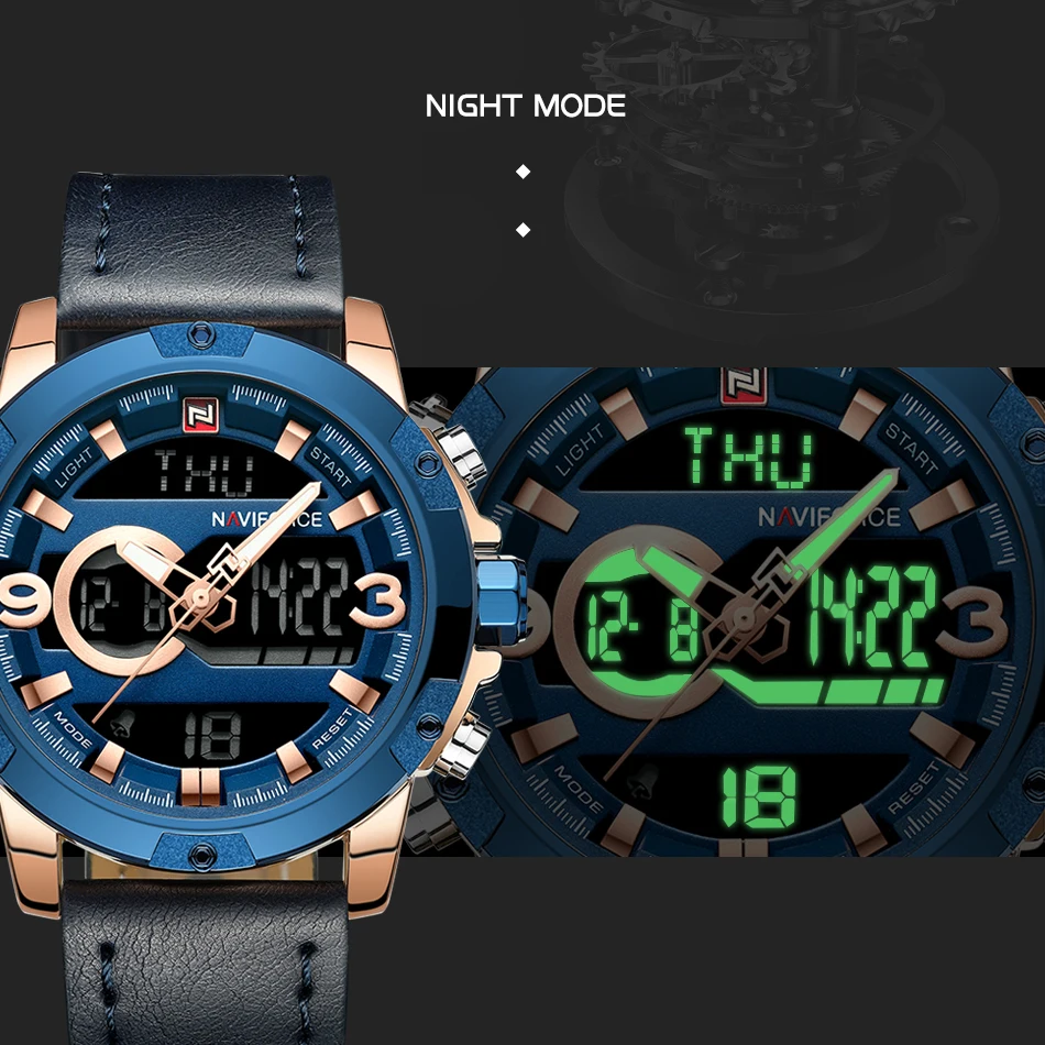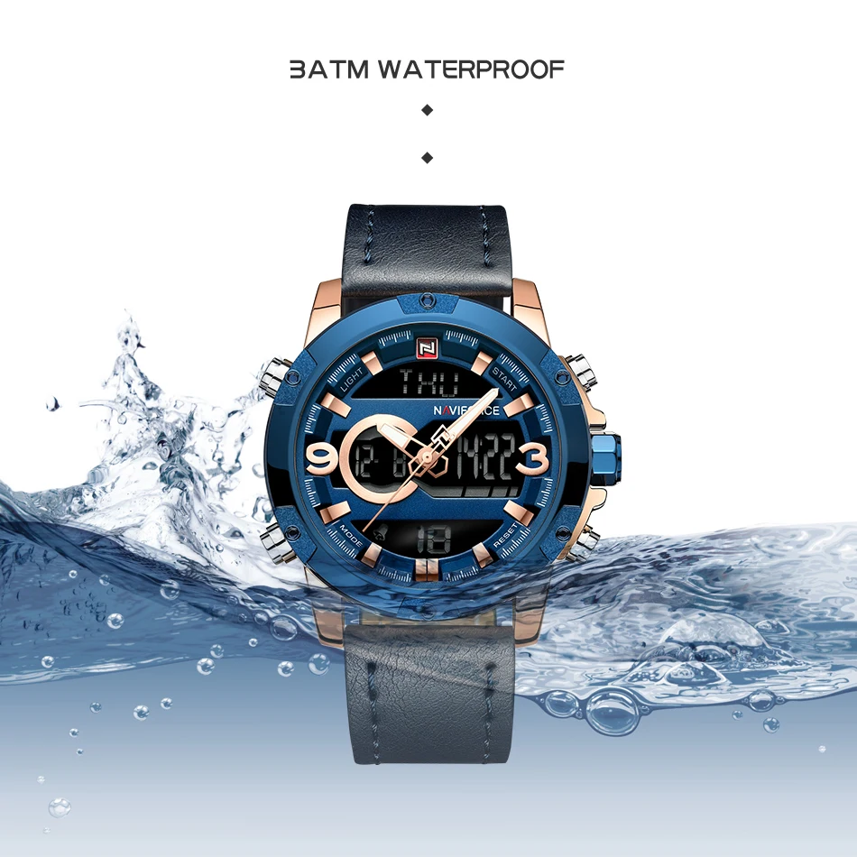 Часы наручные NAVIFORCE Мужские кварцевые, модные водонепроницаемые Роскошные в стиле милитари, спортивные, с двойным дисплеем, синие